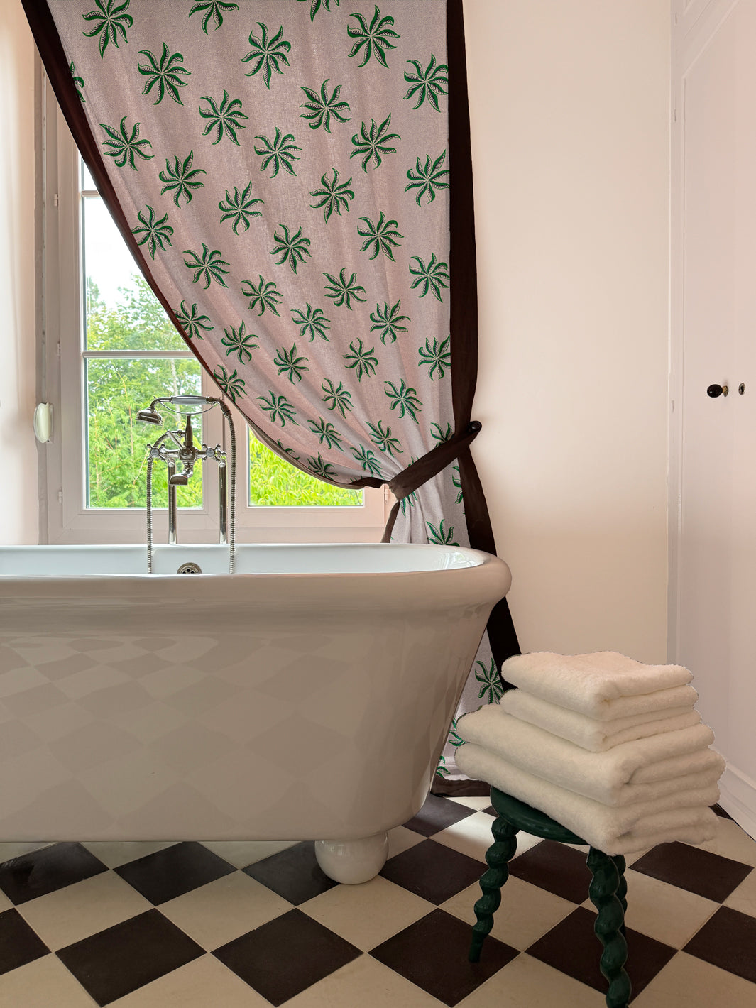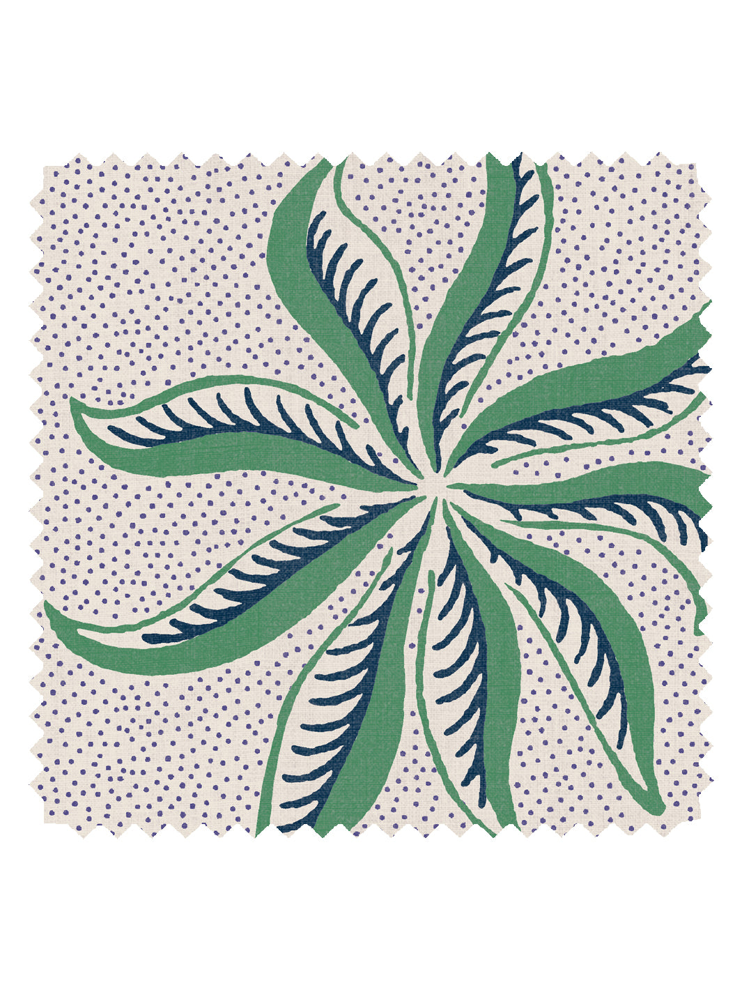 Bring cheerful old-world brightness to nurseries, mudrooms, and bright powder rooms with 'Dot Frisée' linen fabric by Clare V. This daylit French country print — a spirited frisée motif — leaf rosettes set over an ambient dotted texture — arrives in fern green on parchment, part of the Saint Calais Collection.