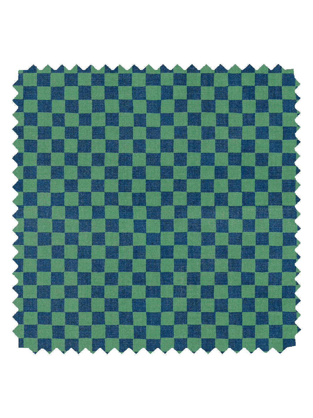 'Le Check' Linen Fabric by Clare V. - Navy Green