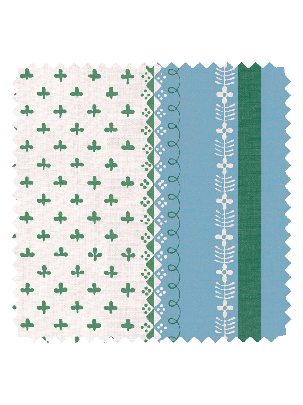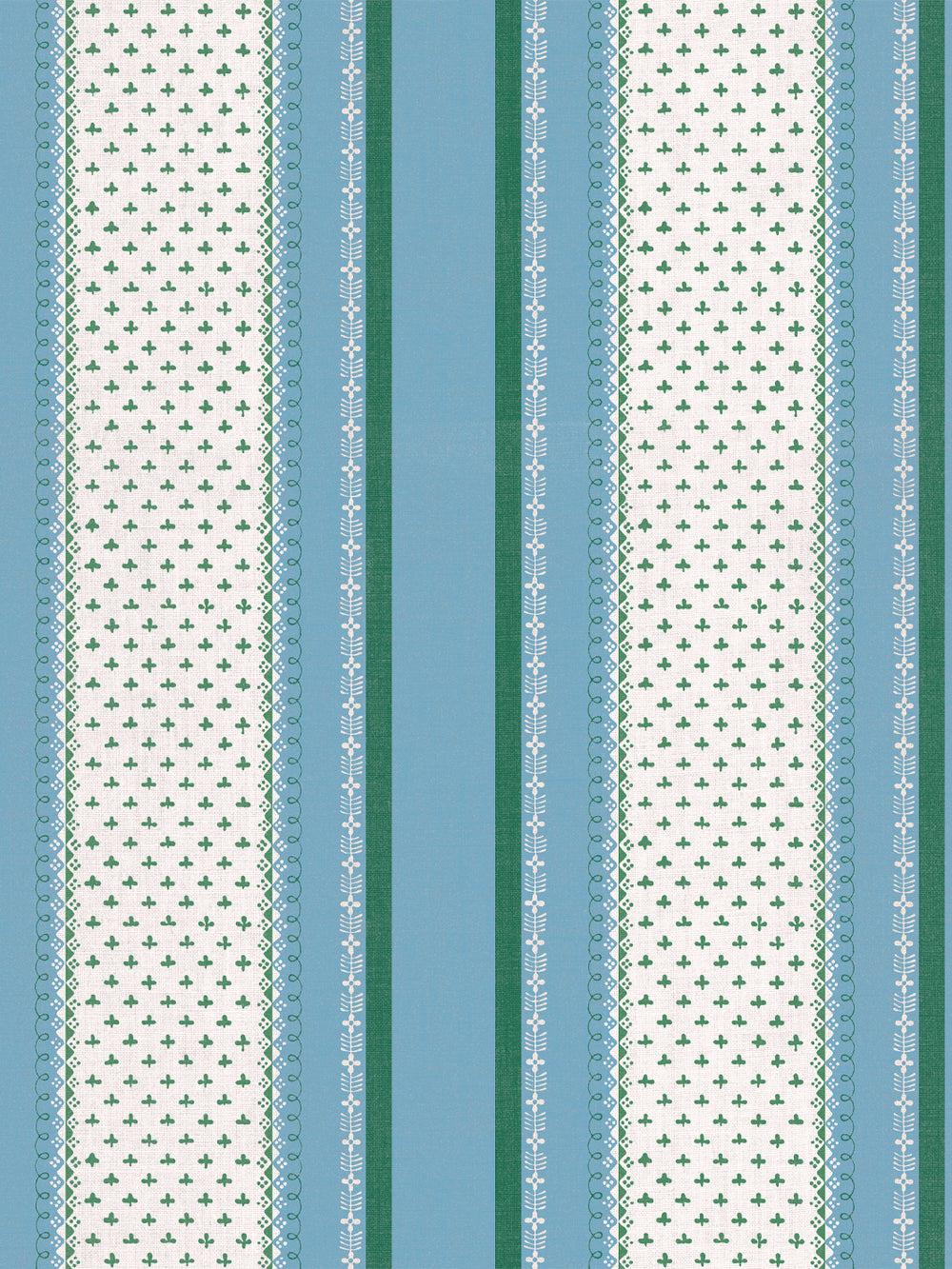 'Fleur de Lis Raylée' Linen Fabric by Clare V. - Azure Green