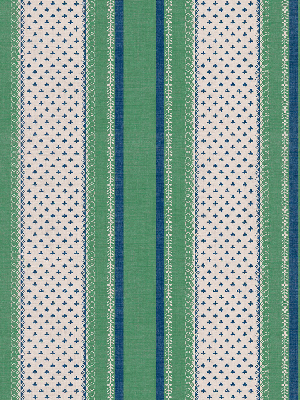 'Fleur de Lis Raylée' Linen Fabric by Clare V. - Navy Green