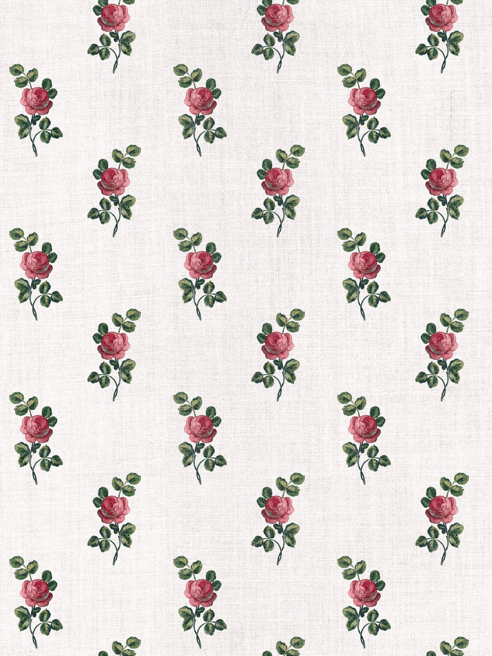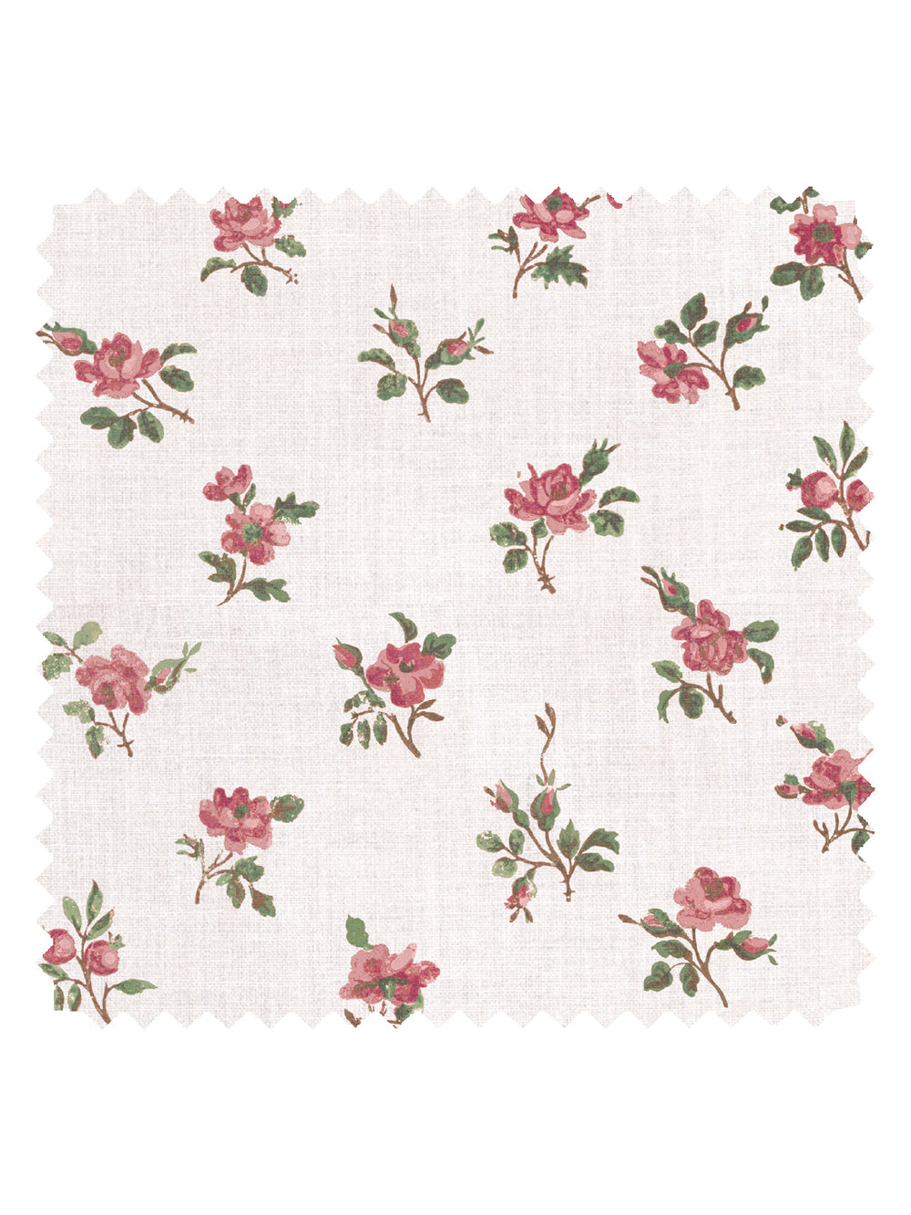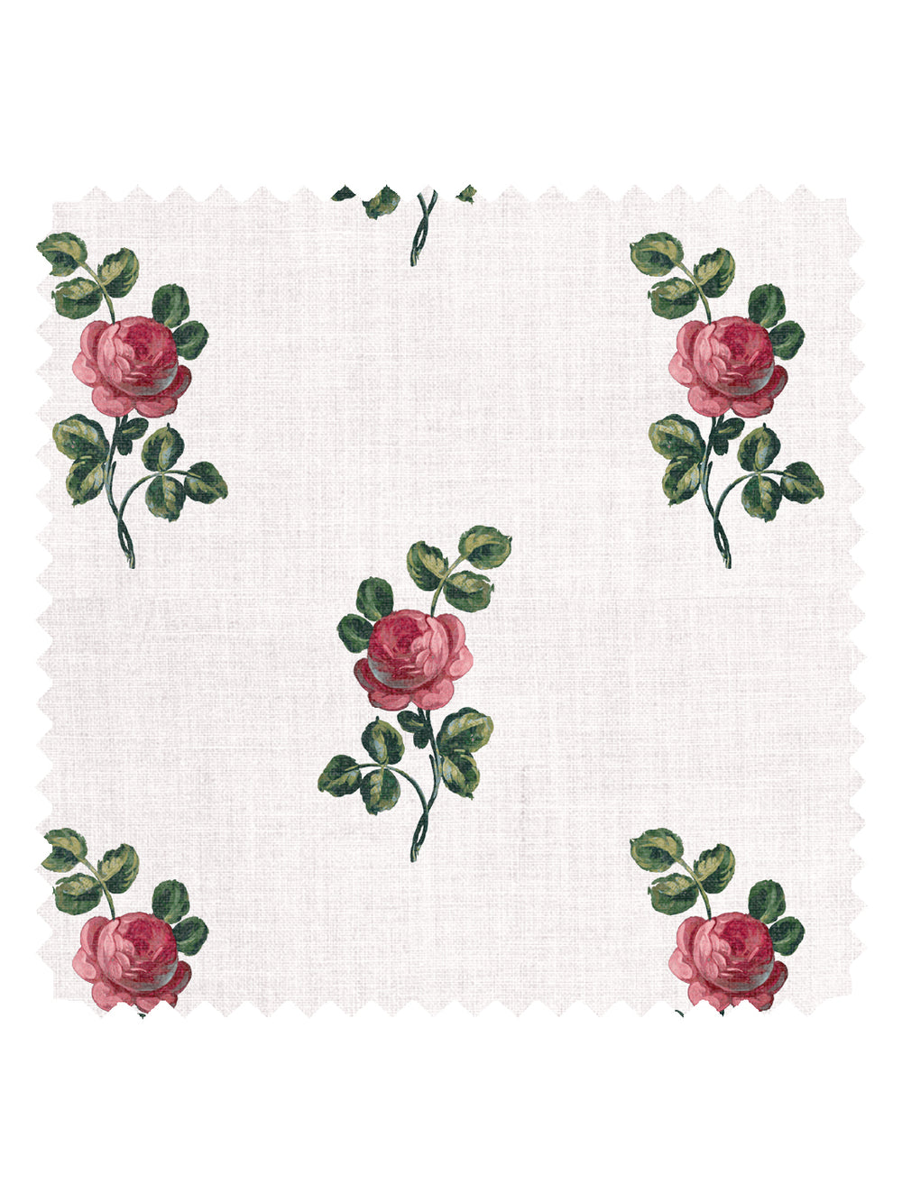 'Petit Rosebud' Linen Fabric by Clare V. - Rouge Green