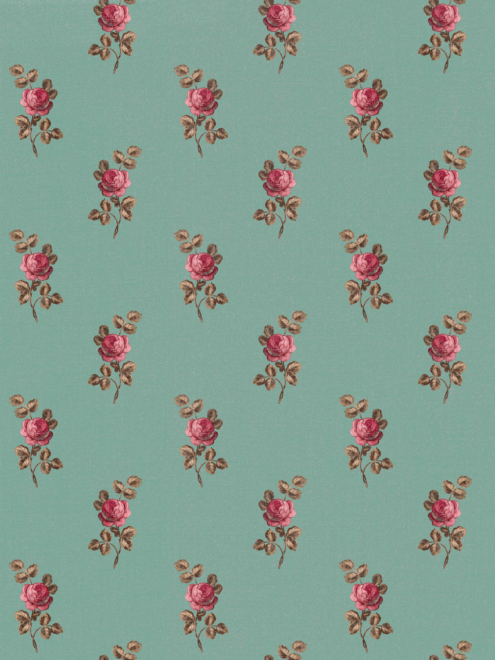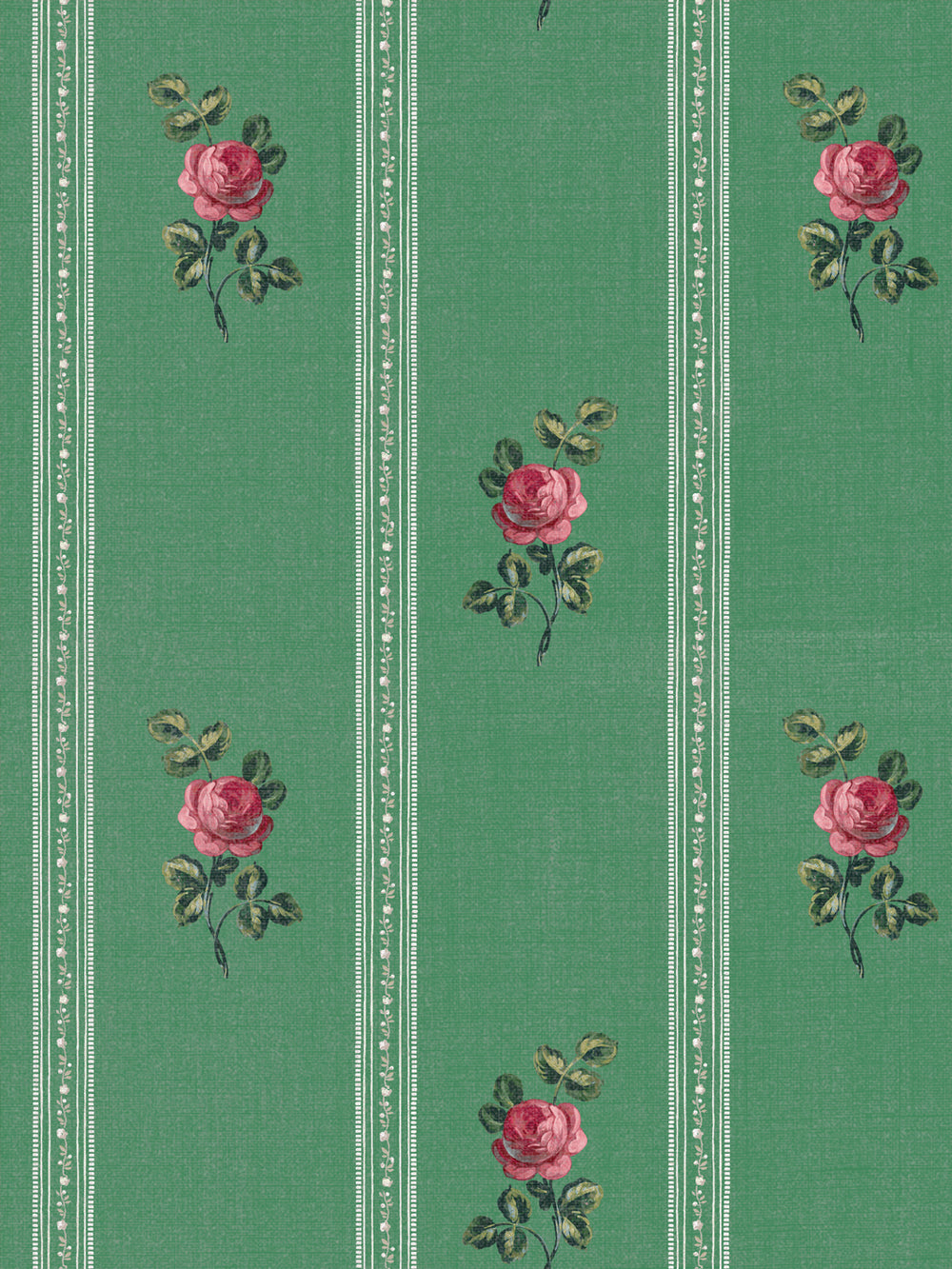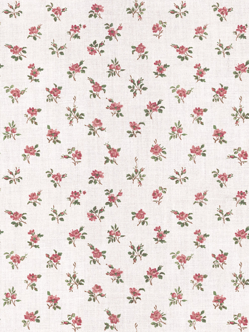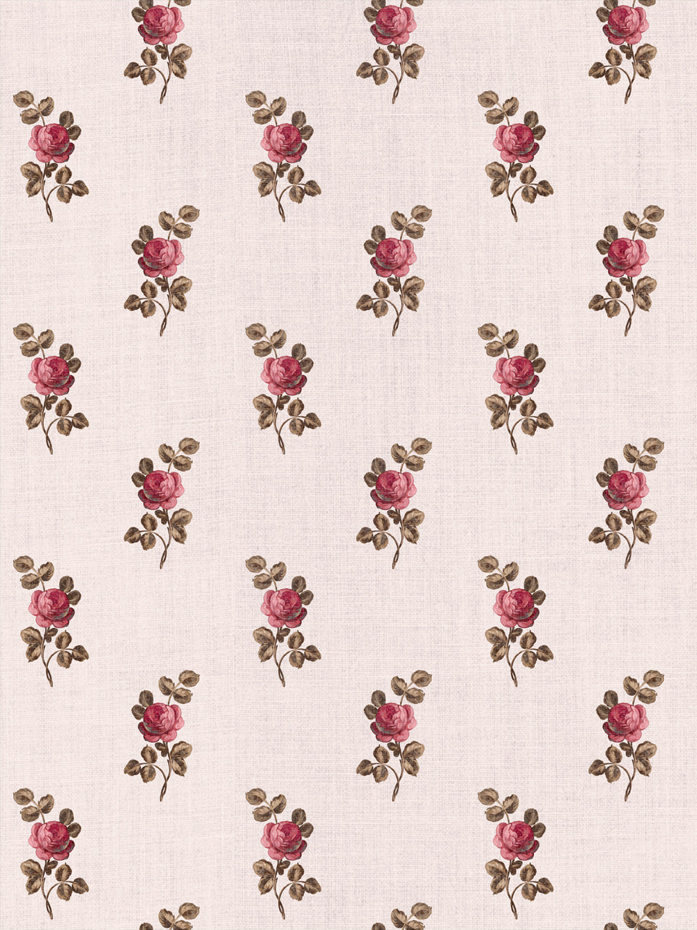 'Petit Rosebud' Linen Fabric by Clare V. - Rouge Green