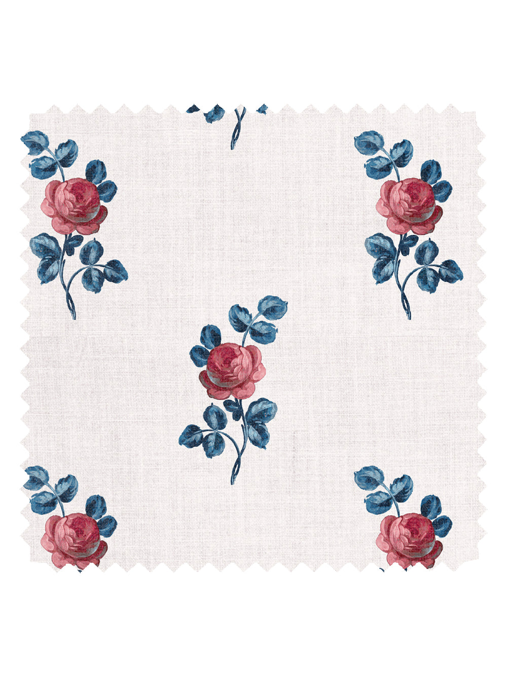 'Le Rosebud' Linen Fabric by Clare V. - Azure Rose