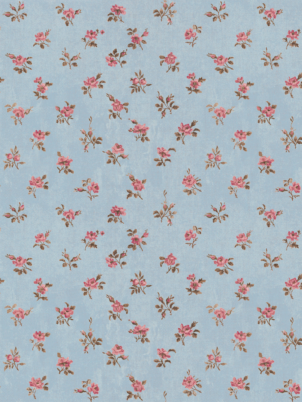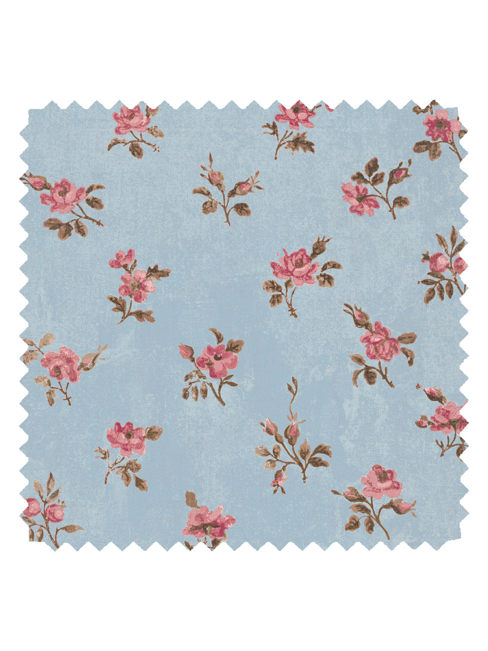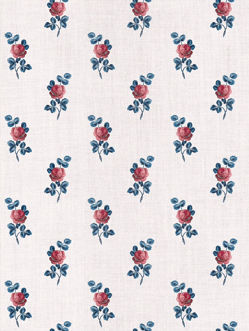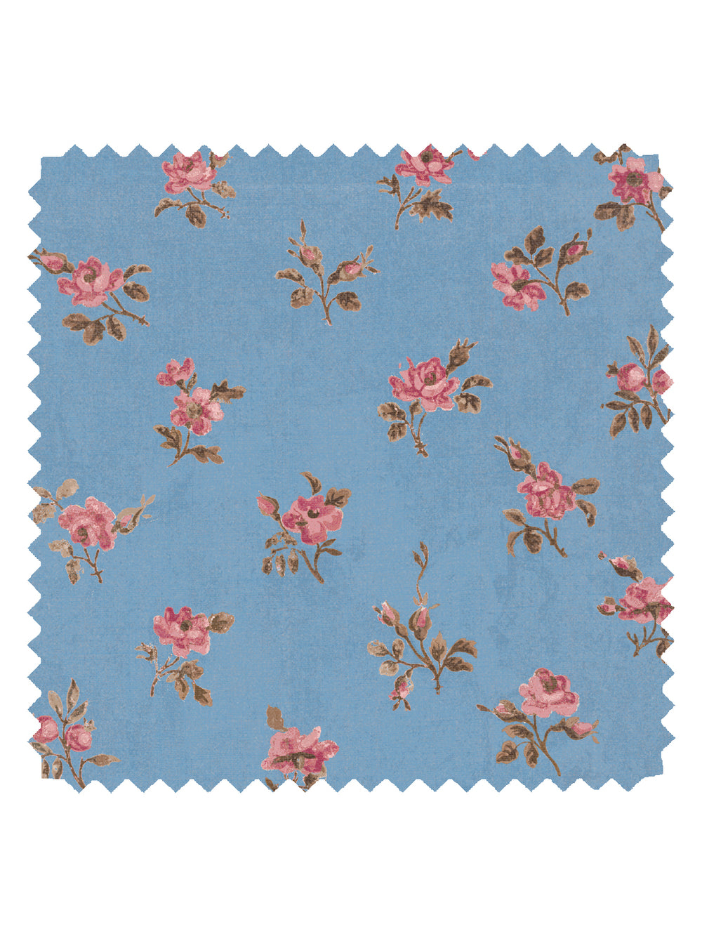 'Petit Rosebud' Linen Fabric by Clare V. - Azure Rose