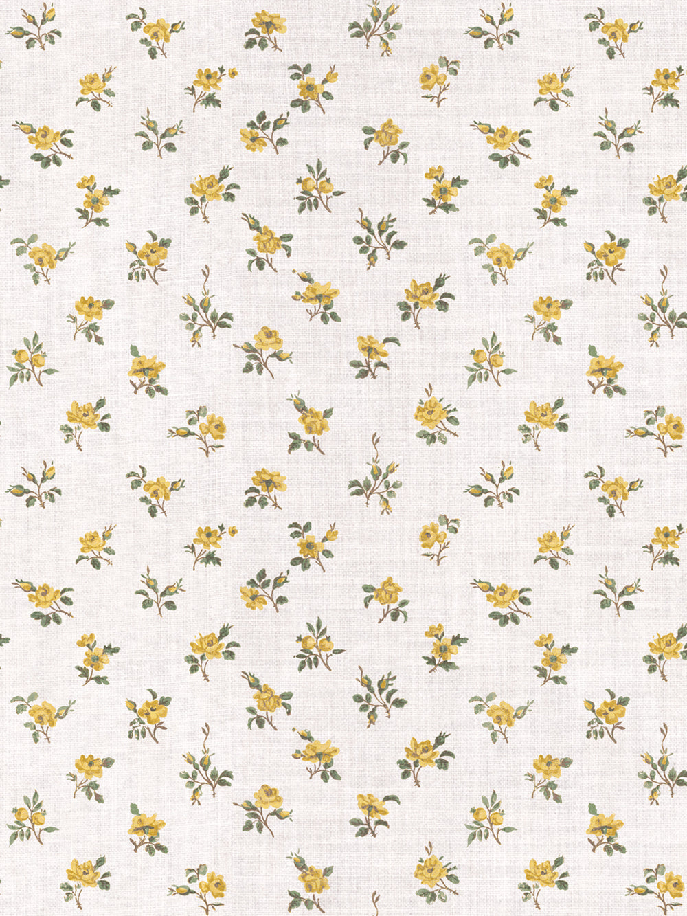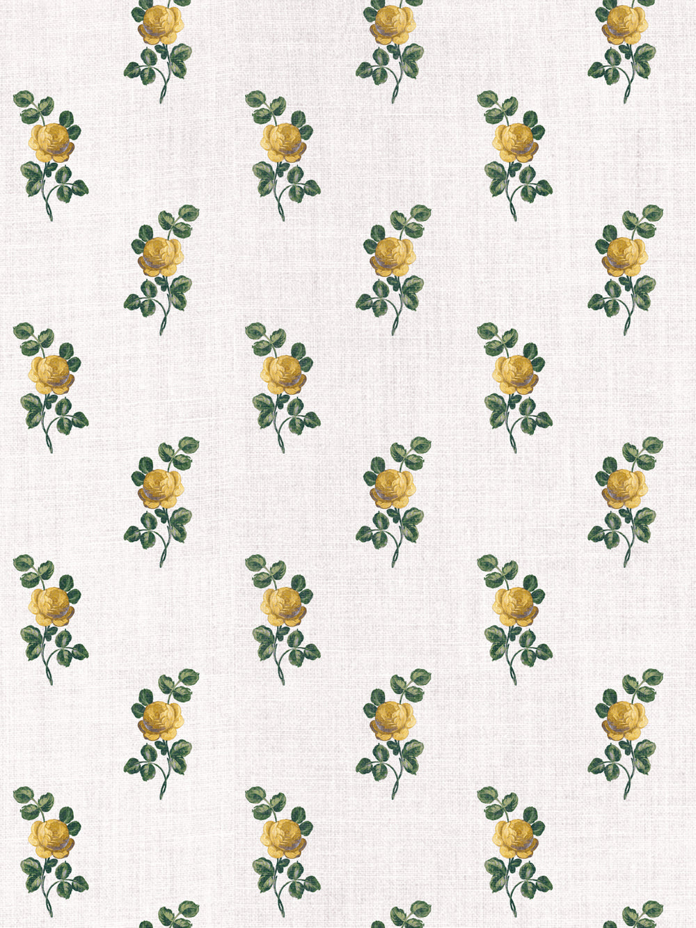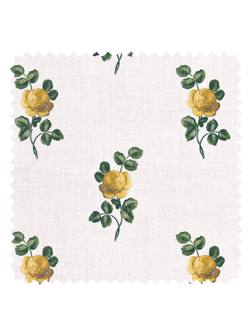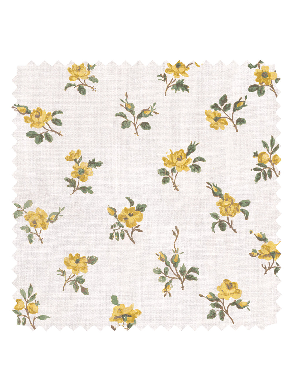 'Petit Rosebud' Linen Fabric by Clare V. - Yellow Green