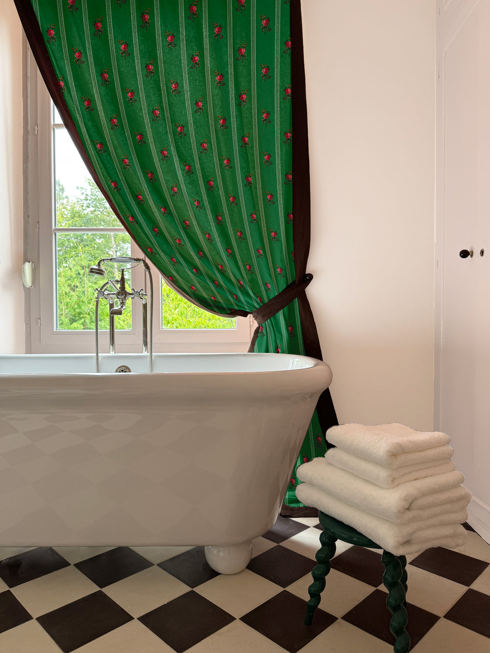'Corsage' Linen Fabric by Clare V. - Rouge Green