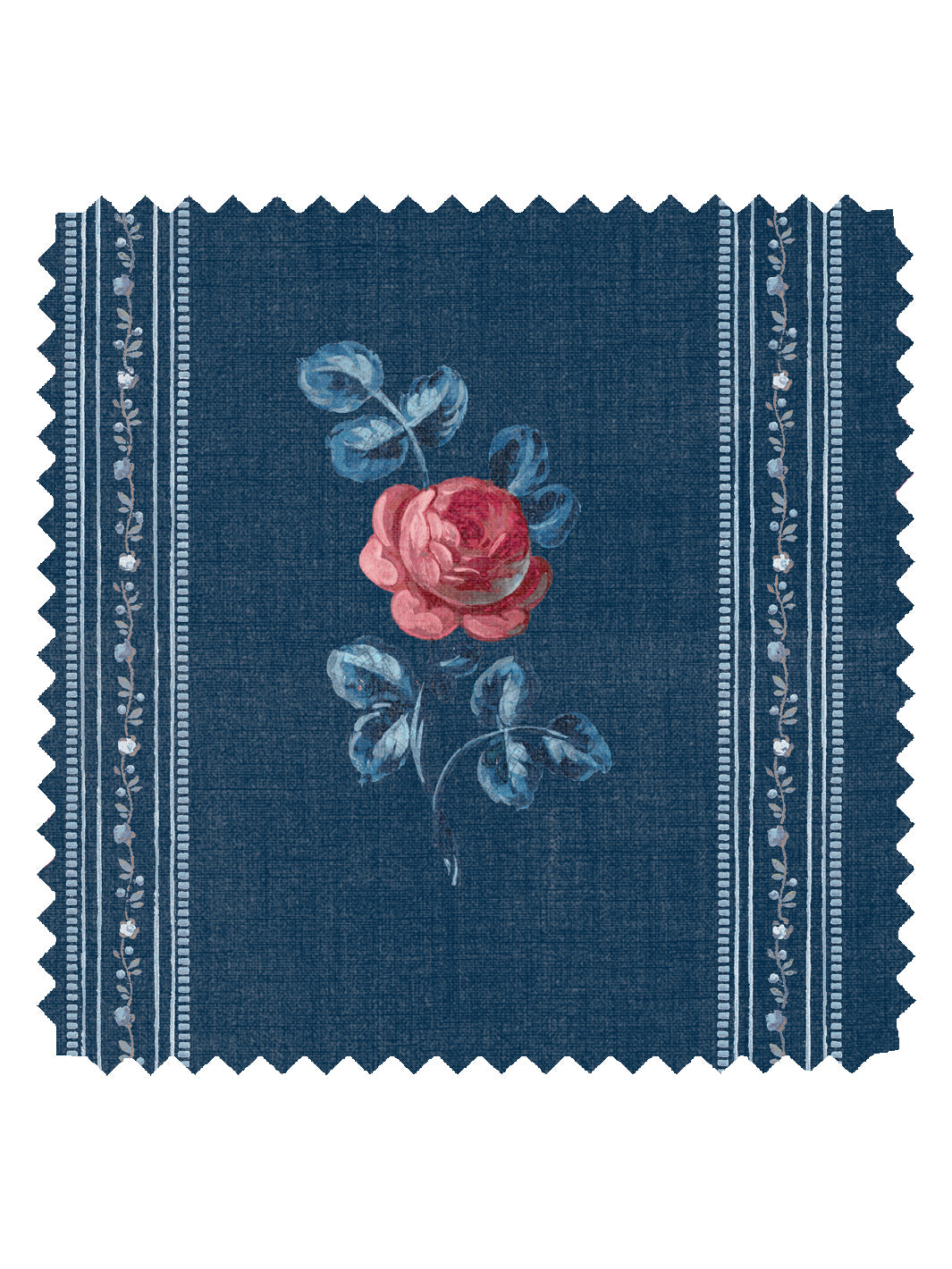 'Le Rosebud' Linen Fabric by Clare V. - Navy Rose
