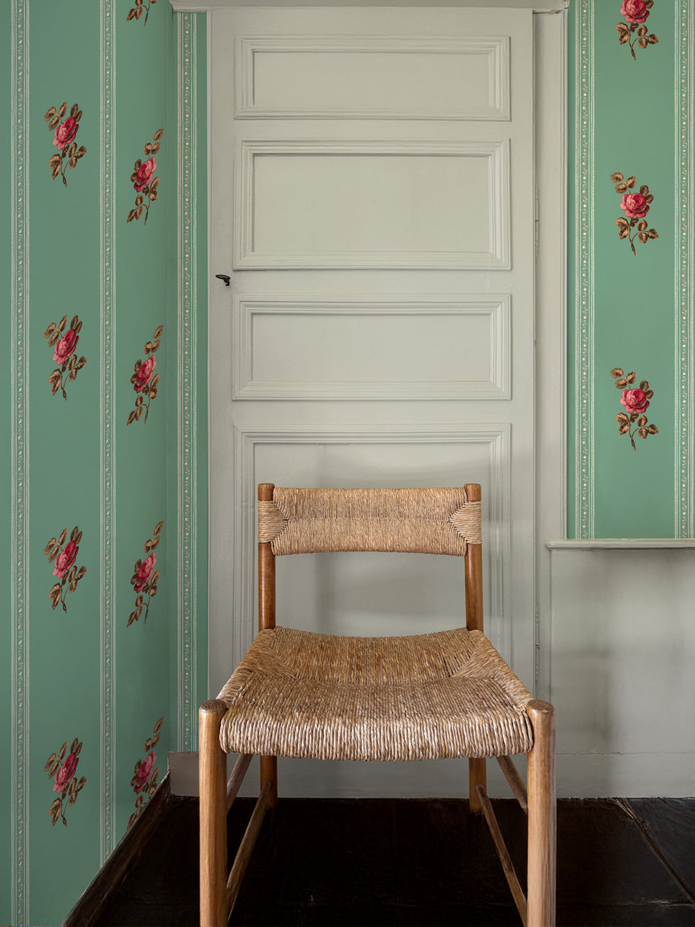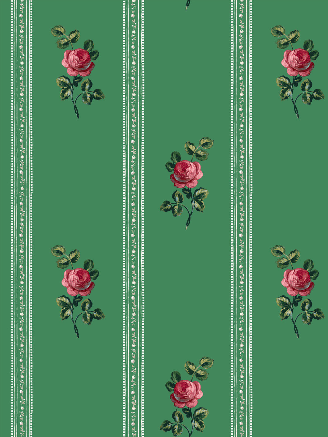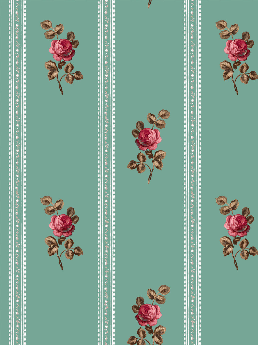 'Le Rosebud' Wallpaper by Clare V. - Antique Green