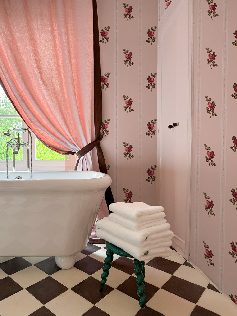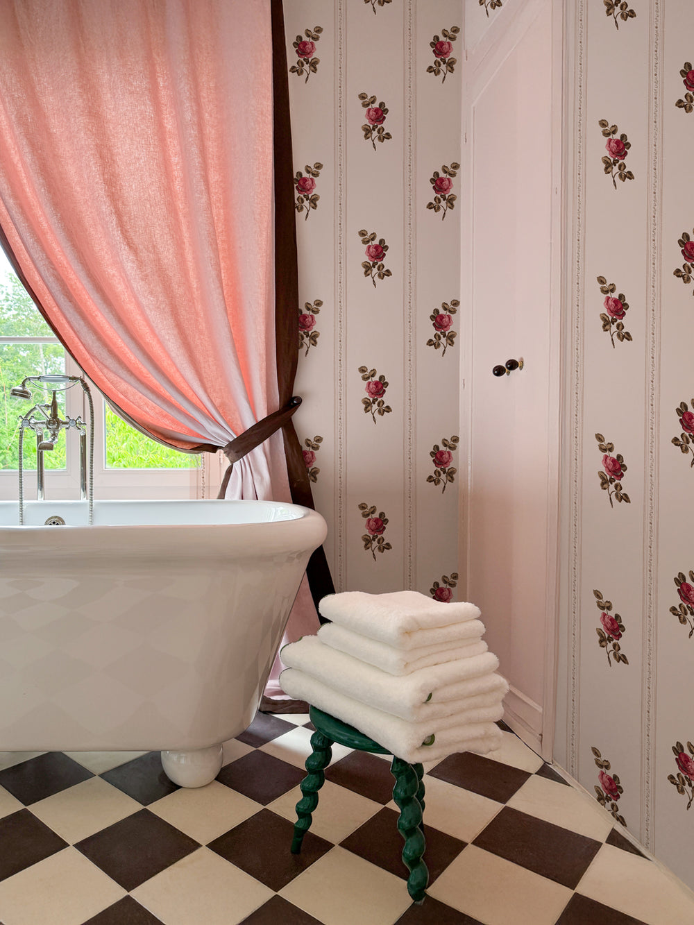 Born from the rolling hills and weathered grandeur of France's Loire Valley, the Saint Calais Collection is Clare Vivier's most personal collaboration with Wallshoppe yet — a love letter to the château that stole her heart, translated into 19 designs for your walls and home. The prints read like a walk through the French countryside: trailing rosebuds climbing a crumbling stone façade, toile scenes rendered with the patina of a brocante treasure, and bold geometrics — L'Argyle, Le Check, Matelassé — that nod to the graphic sophistication of Parisian ateliers. Lush florals like Bouquet Gloire and Corsage sit alongside the delicate hand of Frivolité's lacework stripes, while the collection's namesake Toile du Saint Calais captures the estate's timeless, slightly untamed spirit. C'est magnifique, vraiment. Whether you're papering an entire pied-à-terre or reupholstering a single beloved chair, the collection meets you where you are. Échantillons (that's samples, s'il vous plaît) are available in every colorway, because the best design decisions start with living alongside a pattern for a few days. Très Wallshoppe. Très Clare V. Très you....