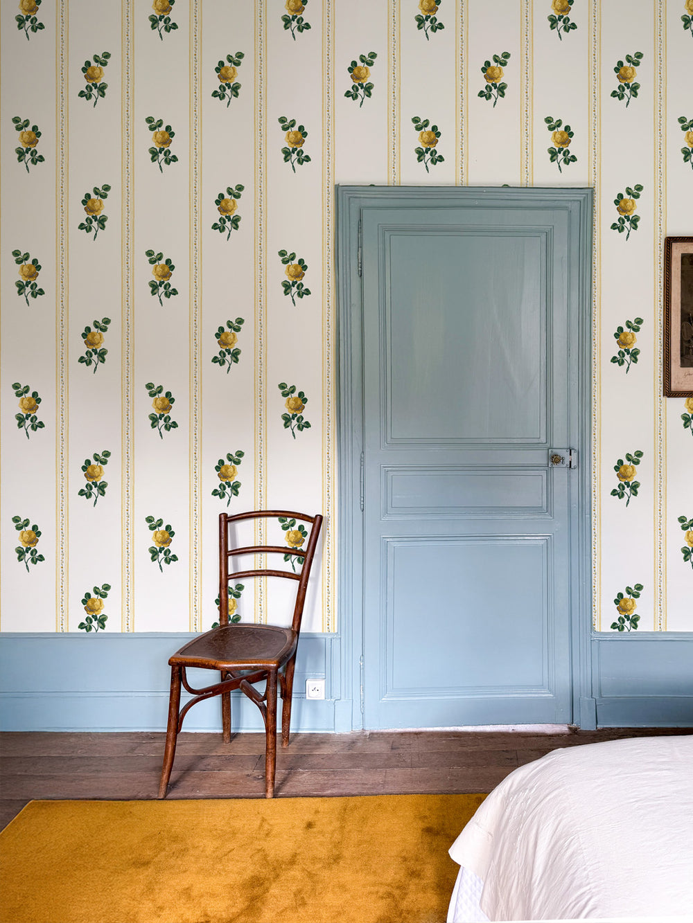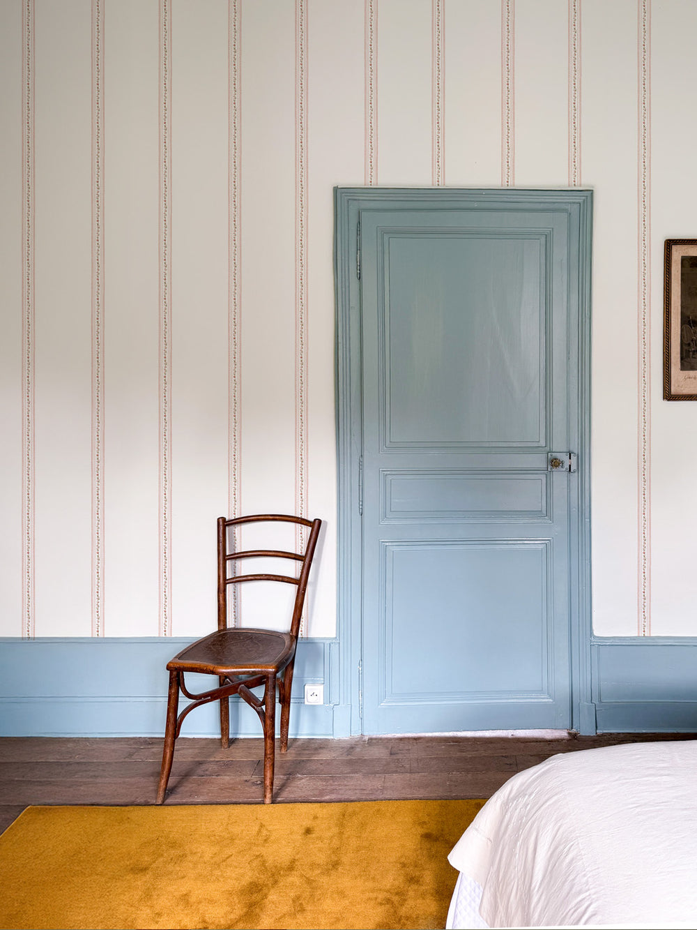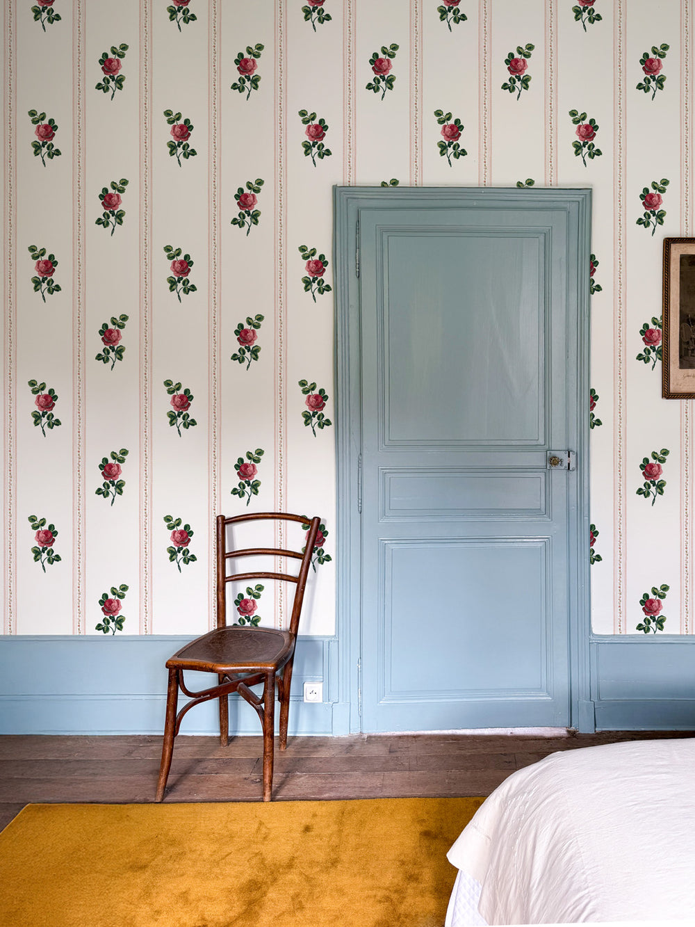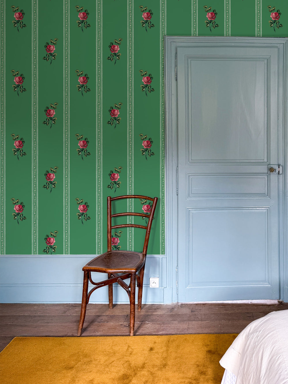 Whether you're papering an entire pied-à-terre or reupholstering a single beloved chair, the collection meets you where you are. Échantillons (that's samples, s'il vous plaît) are available in every colorway, because the best design decisions start with living alongside a pattern for a few days.