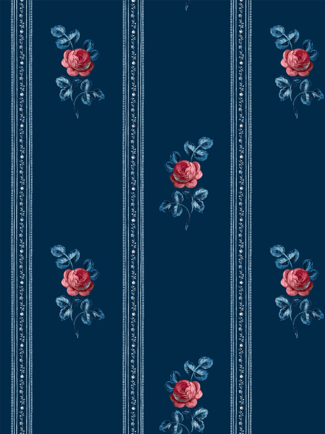'Le Rosebud' Wallpaper by Clare V. - Rouge Blue