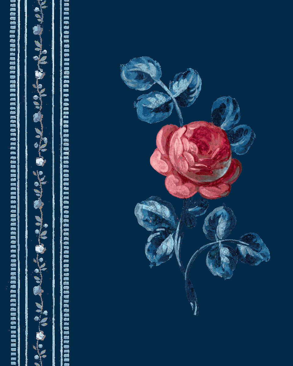 'Le Rosebud' Wallpaper by Clare V. - Navy Rose