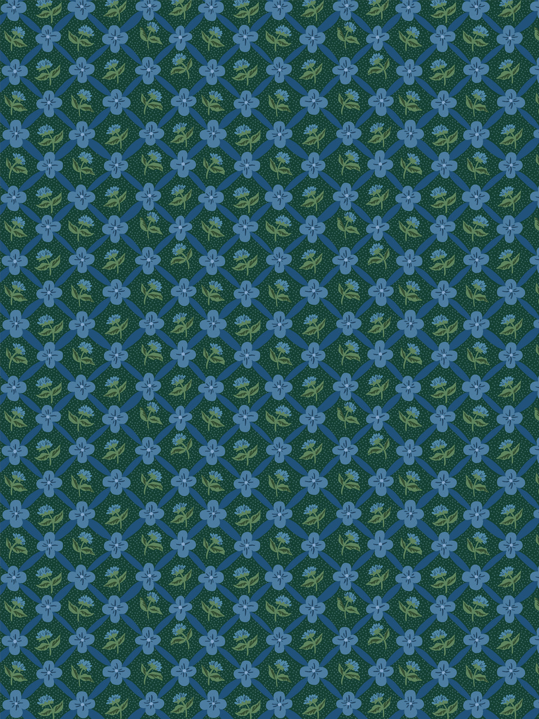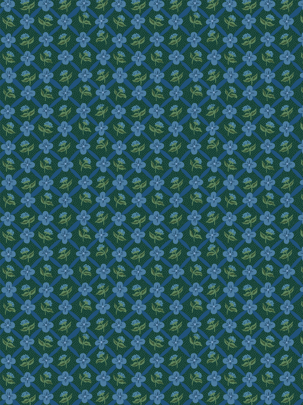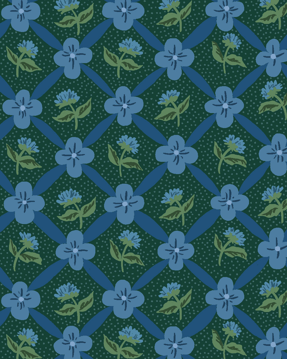 'Lattice Fleur' Wallpaper by Clare V. - Deep Forest Blue