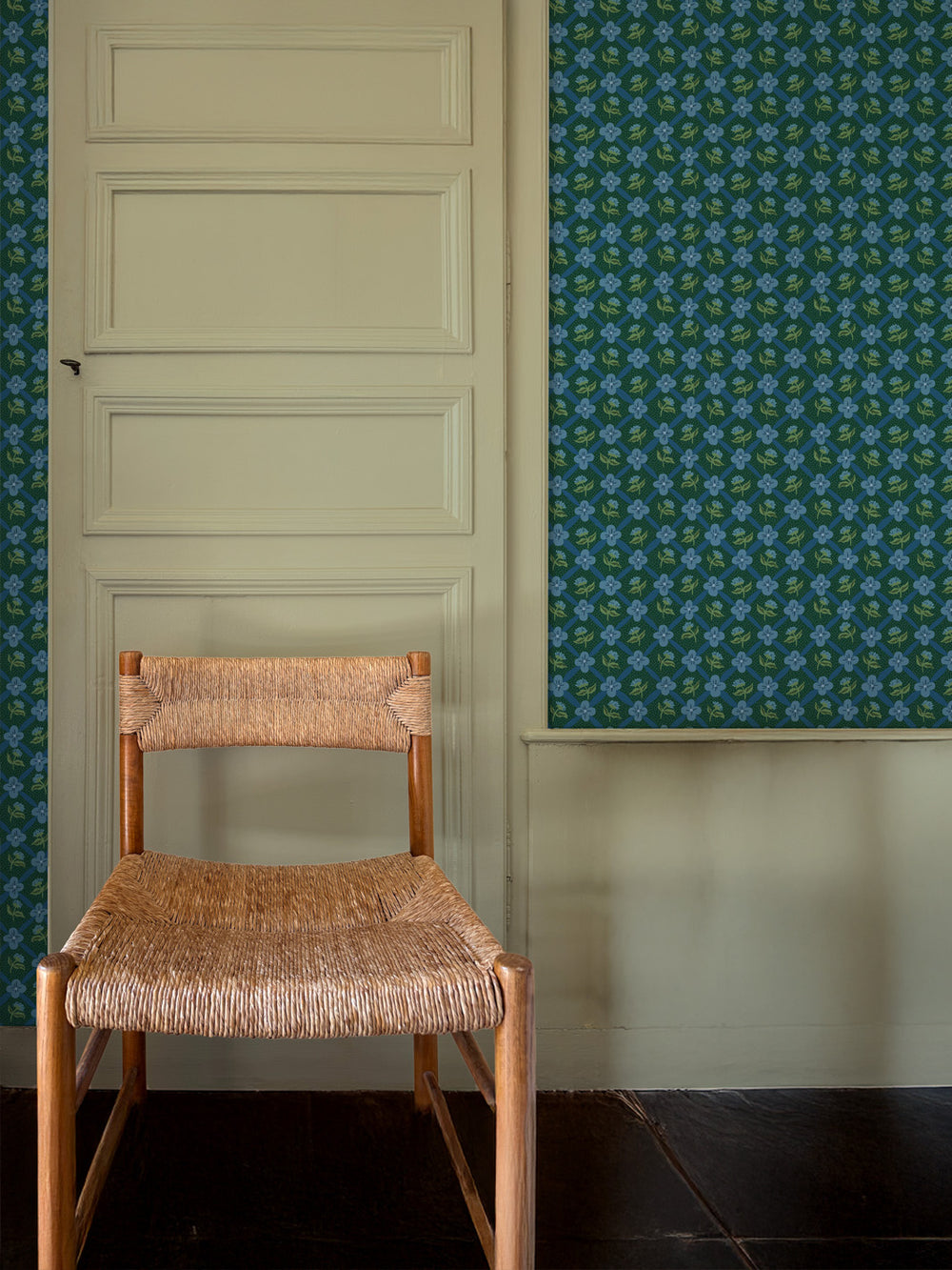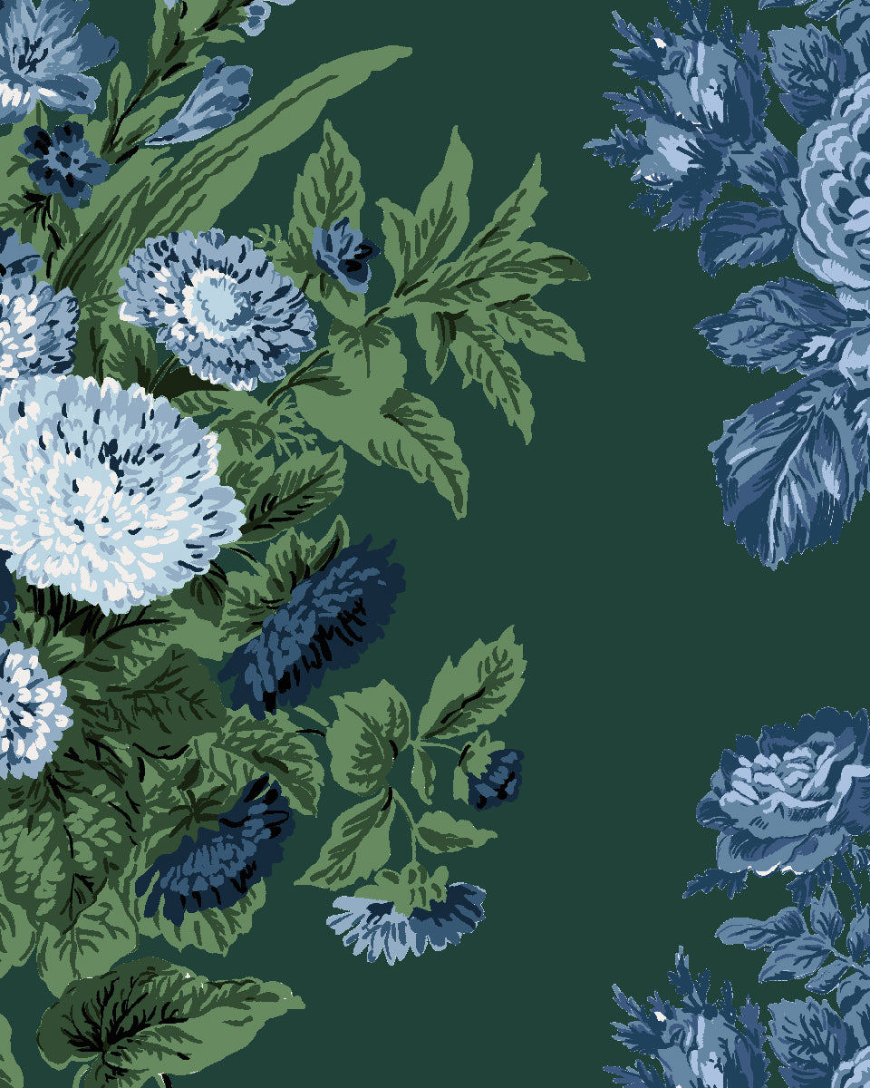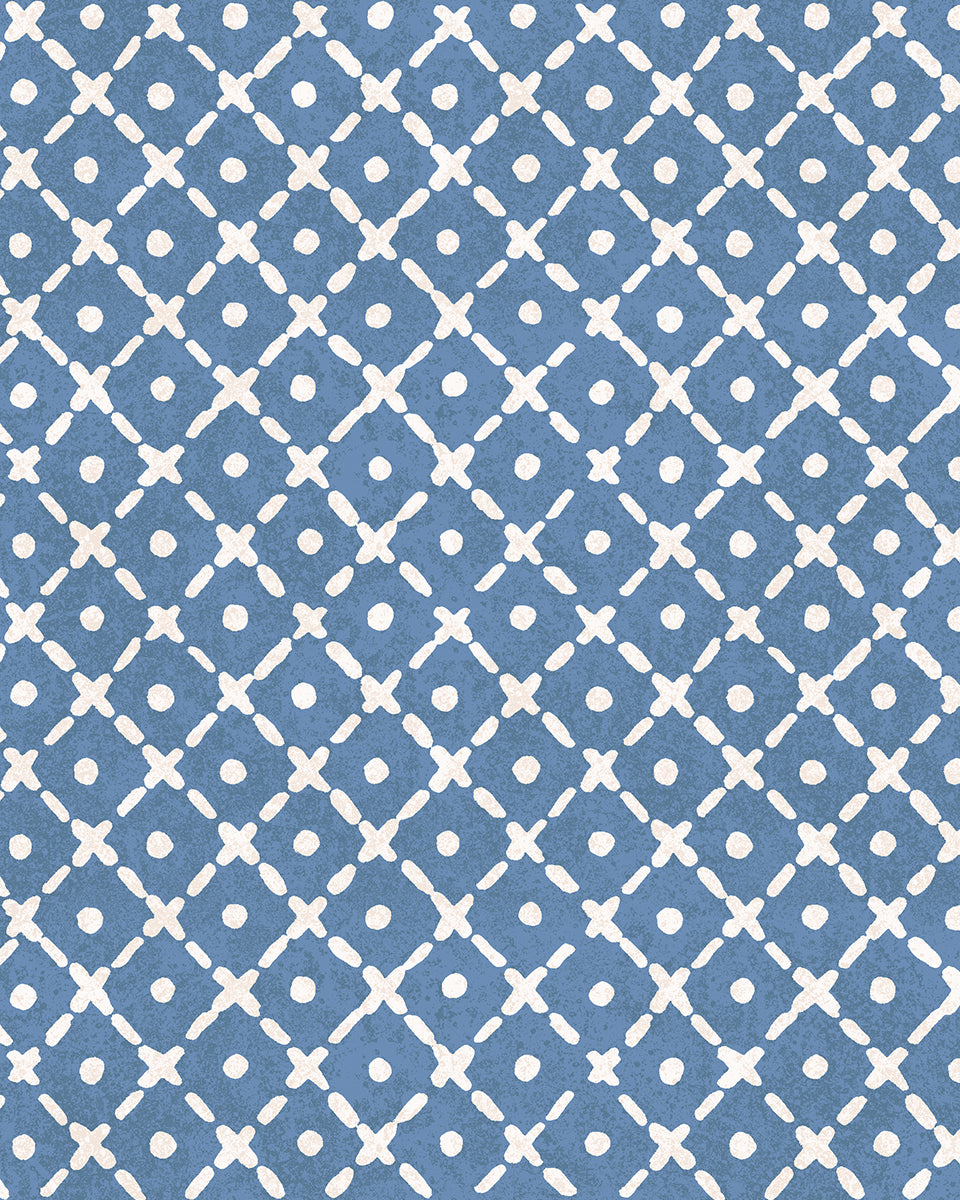 'Lattice Fleur' Wallpaper by Clare V. - Deep Forest Blue