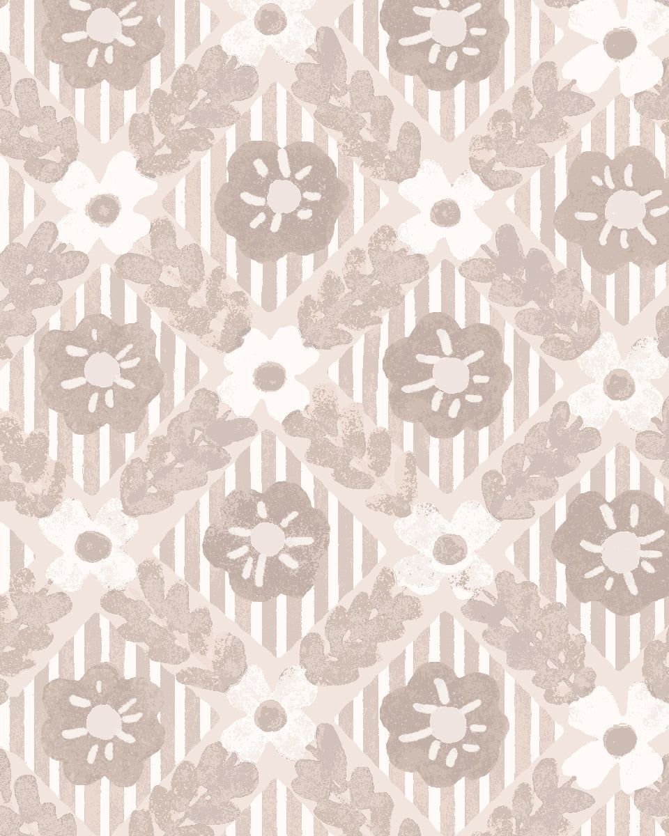 'Lattice Jardin' Wallpaper by Clare V. - Dove Bisque
