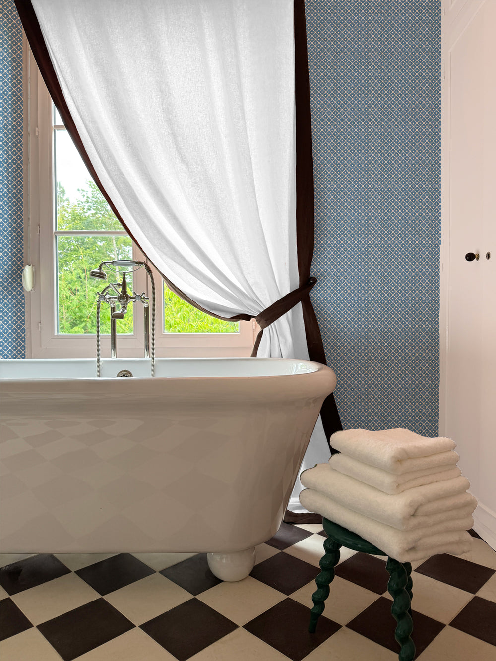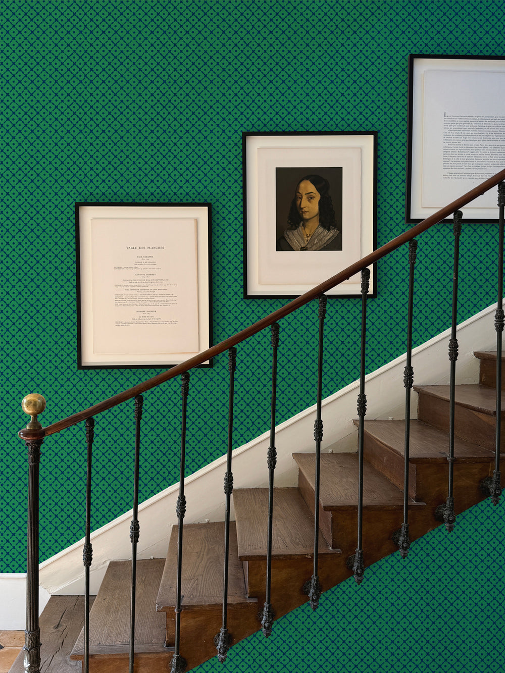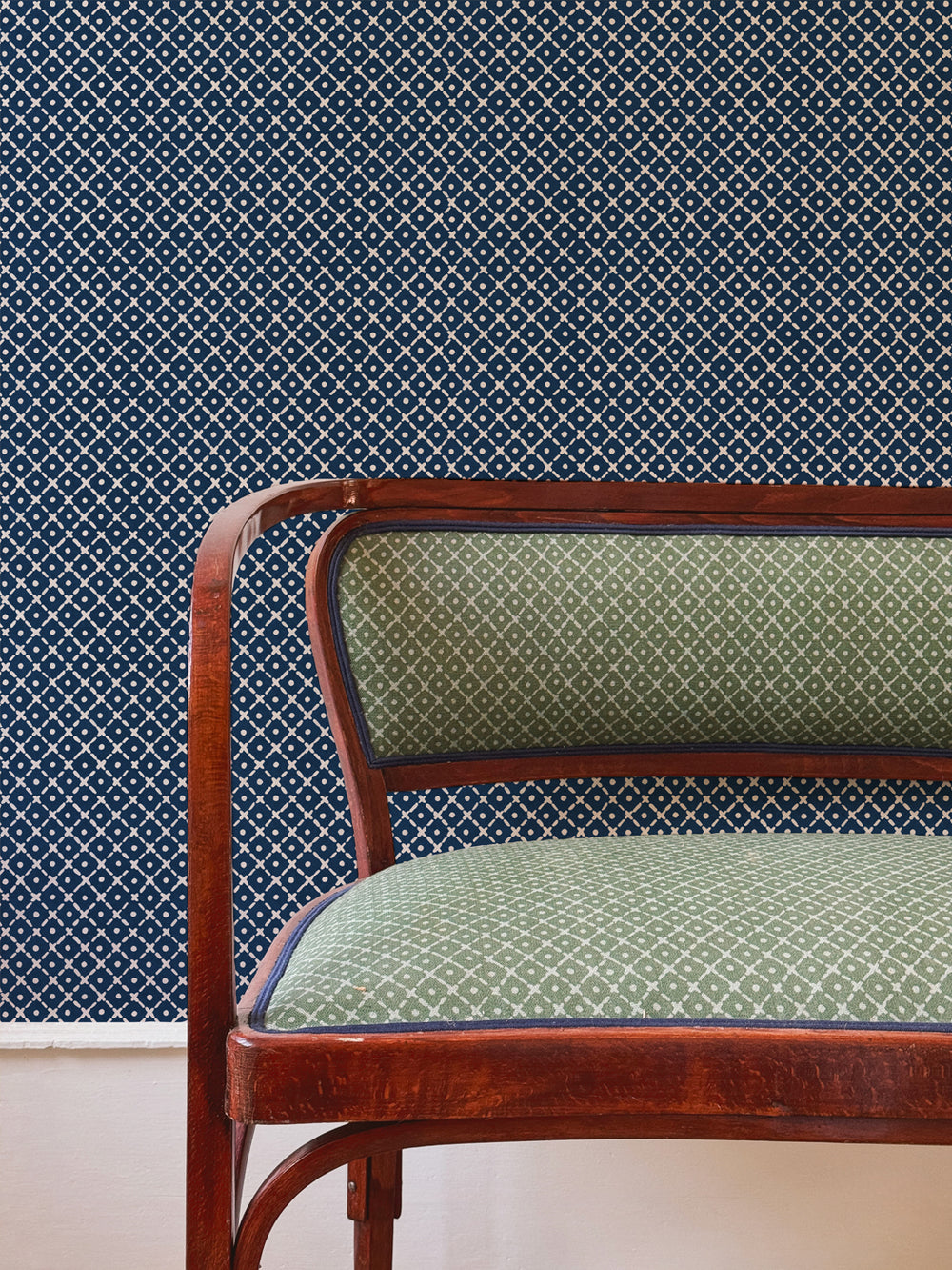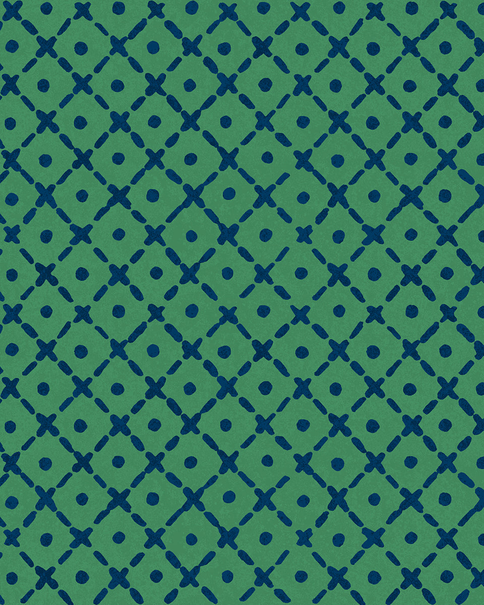 'Matelassé' Wallpaper by Clare V. - Green Navy