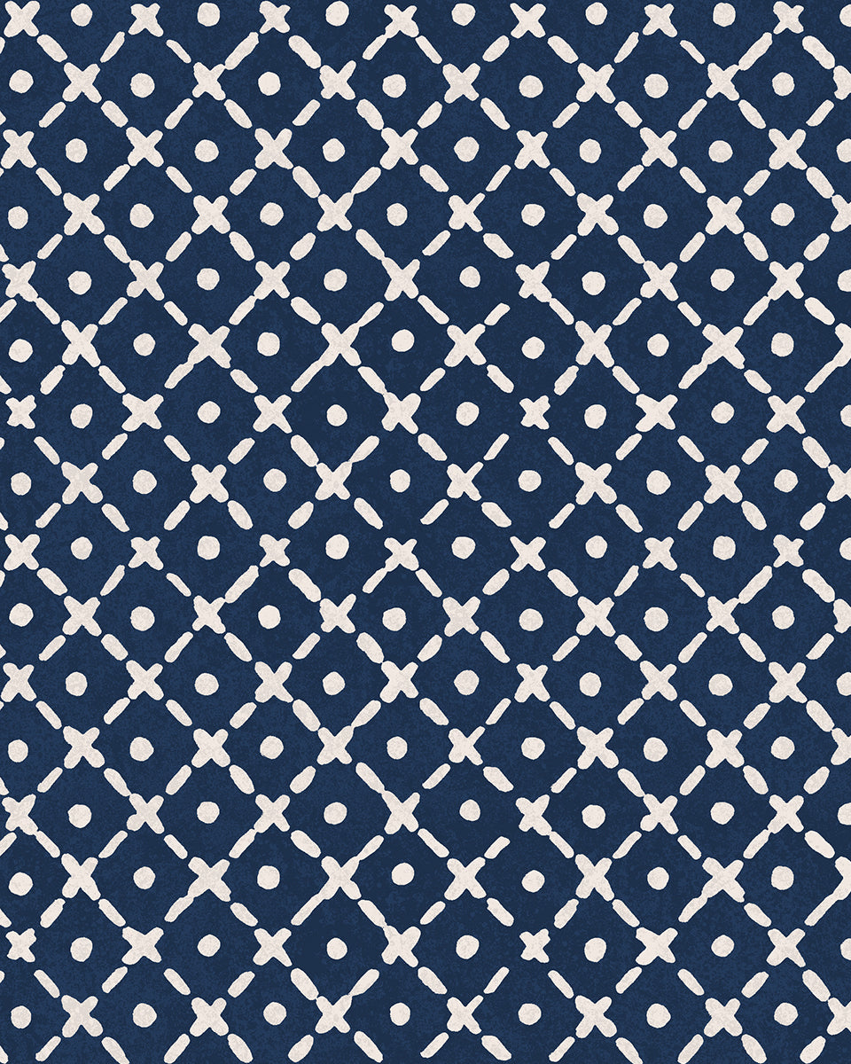 'Matelassé' Wallpaper by Clare V. - Navy Cream