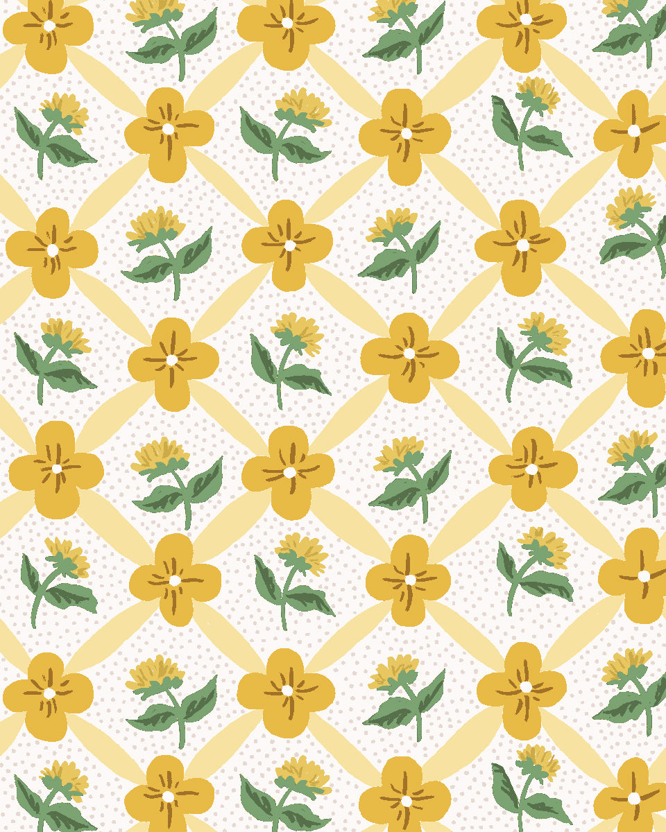 'Lattice Fleur' Wallpaper by Clare V. - Buttercream Gold