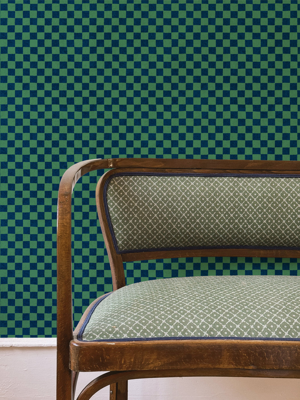 'Le Check' Wallpaper by Clare V. - Navy Green