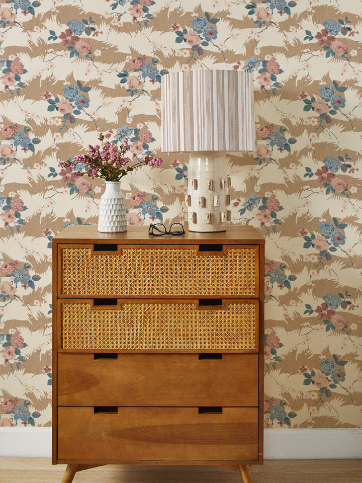 'Dora Chintz' Grasscloth Wallpaper by Nathan Turner - Saddle Pink