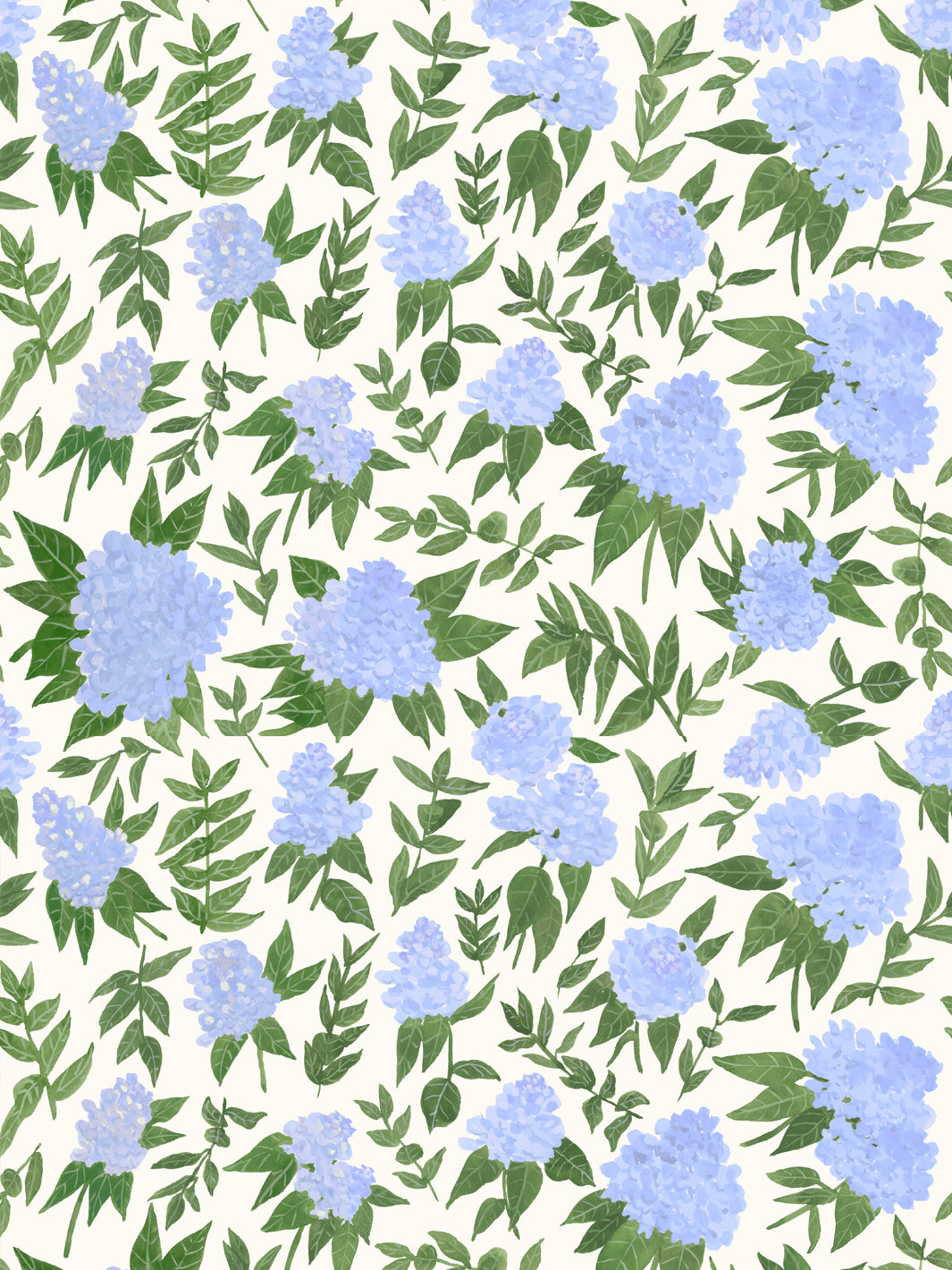 'Painted Hydrangea' Wallpaper by Wallshoppe - Blue
