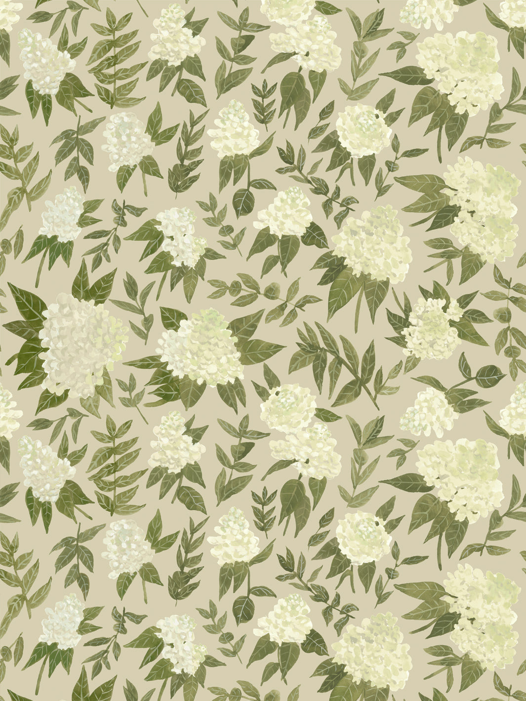 'Painted Hydrangea' Wallpaper by Wallshoppe - Olive