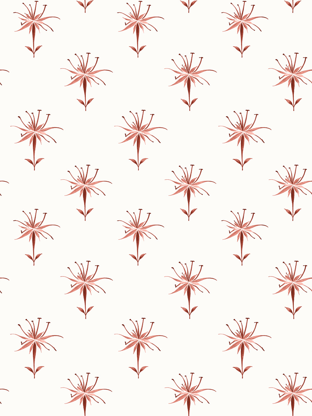 'Spider Lily Micro' Wallpaper by Flint Wood & Hicks - Dark Coral