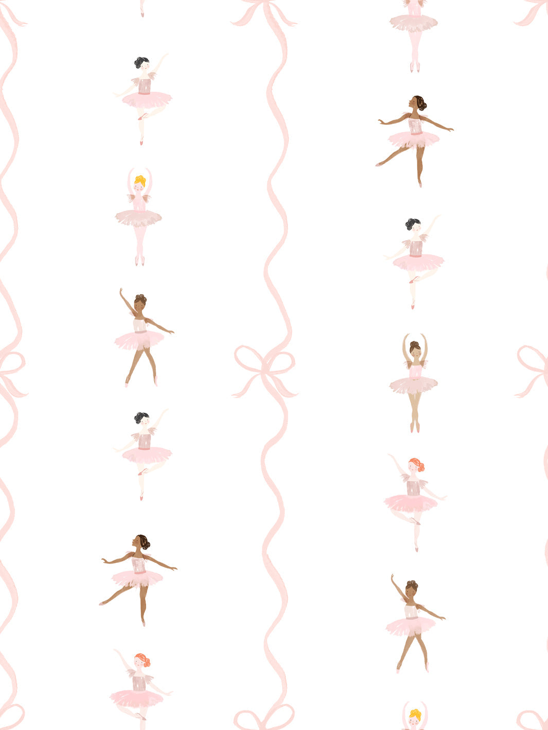 Soft vertical stripes are layered with subtle ballerina details, creating a design that feels graceful without being overly literal. The pattern adds structure while maintaining a light, storybook softness. The pink colorway enhances the mood of the design, giving it a distinct tone that feels thoughtful, imaginative, and easy to live with.
