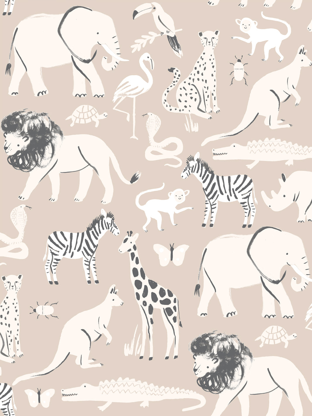 'Safari Animals' Wallpaper by Meri Meri - Beige