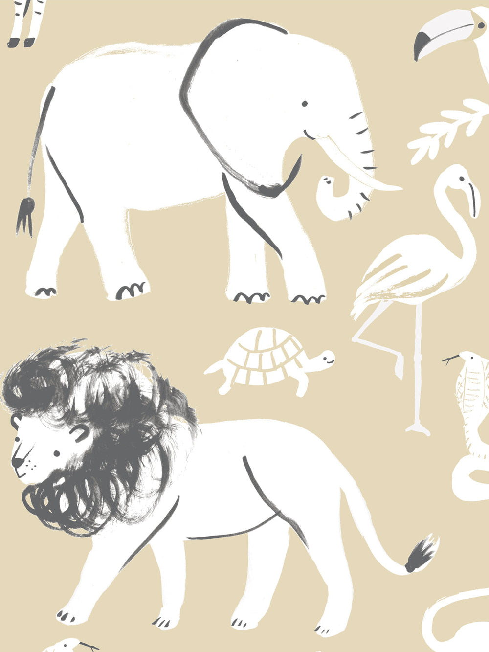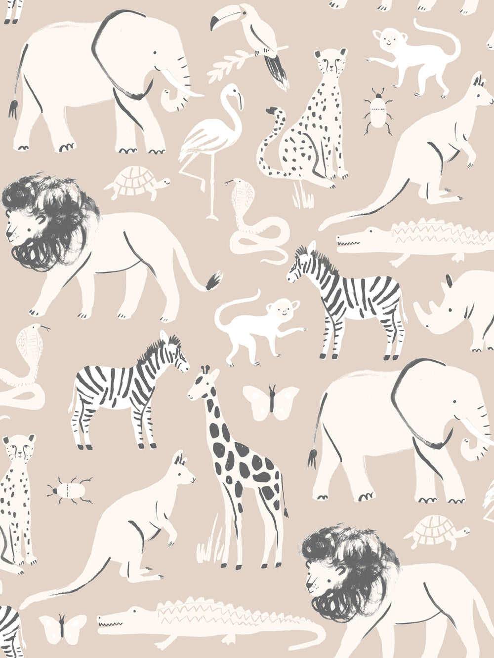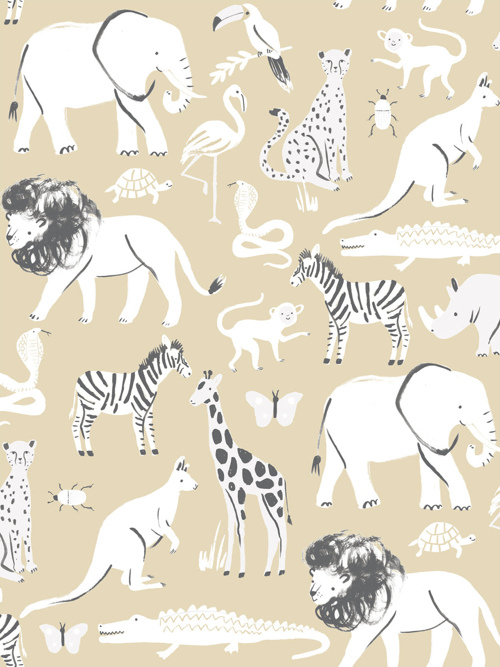 'Safari Animals' Wallpaper by Meri Meri - Sand
