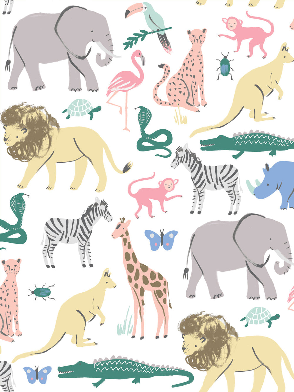 'Safari Animals' Wallpaper by Meri Meri - Multi