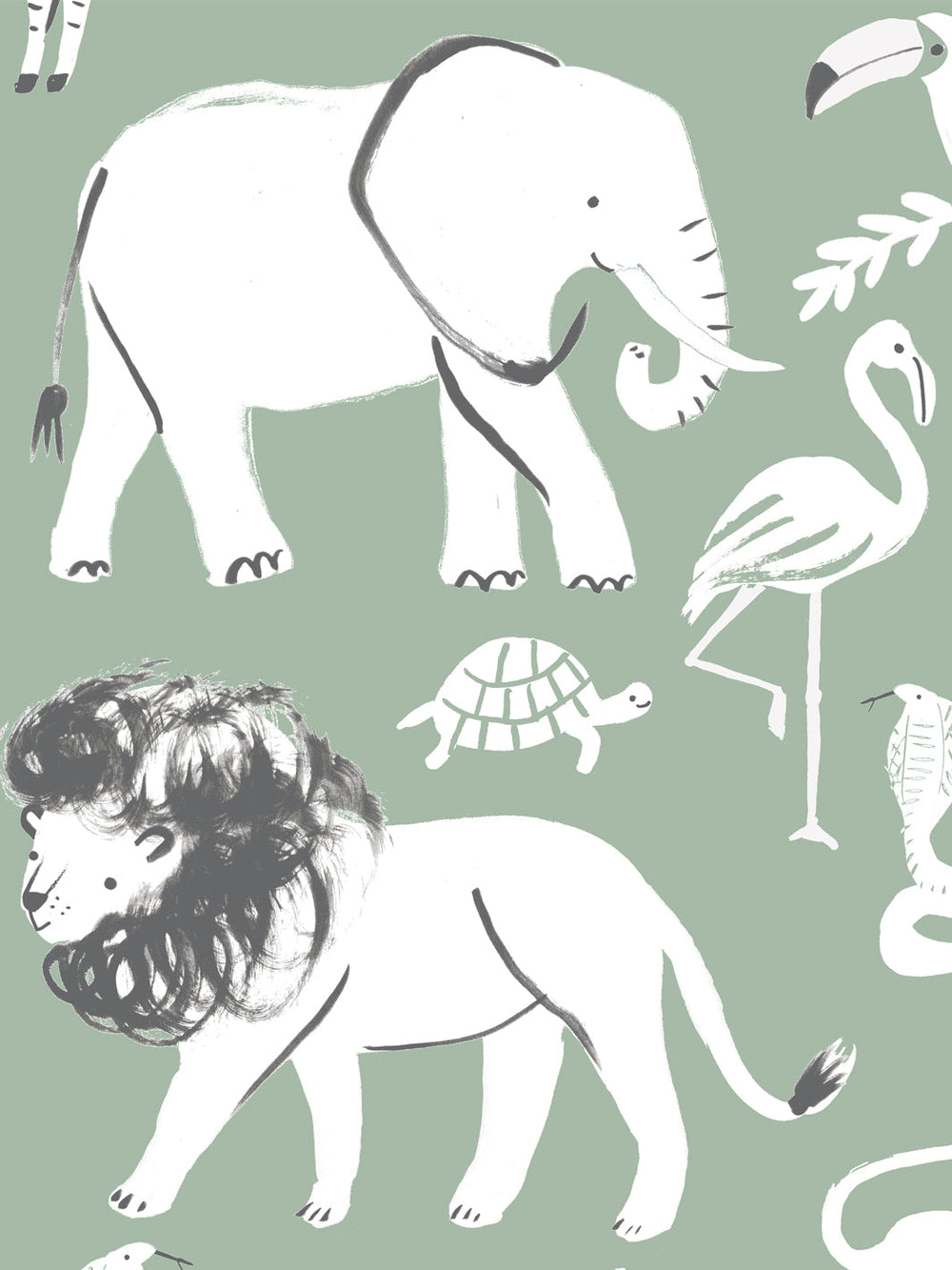 'Safari Animals' Wallpaper by Meri Meri - Sage