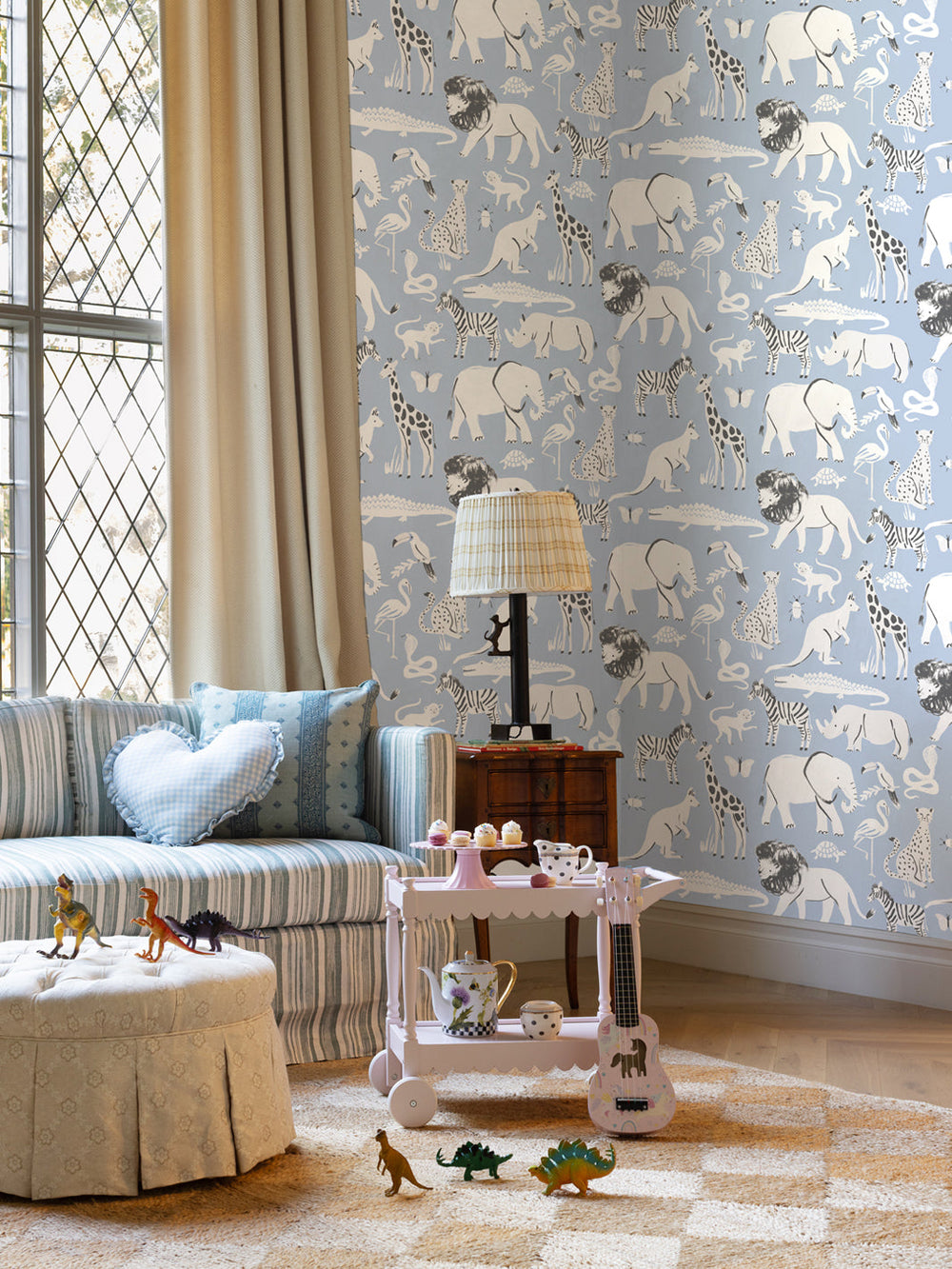'Safari Animals' Wallpaper by Meri Meri - Slate Blue