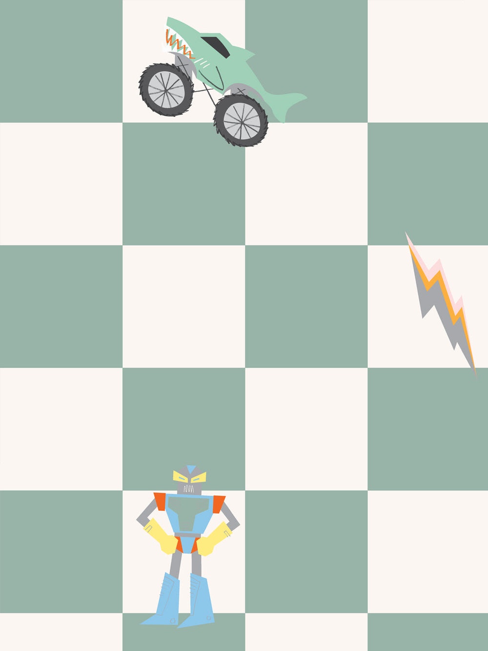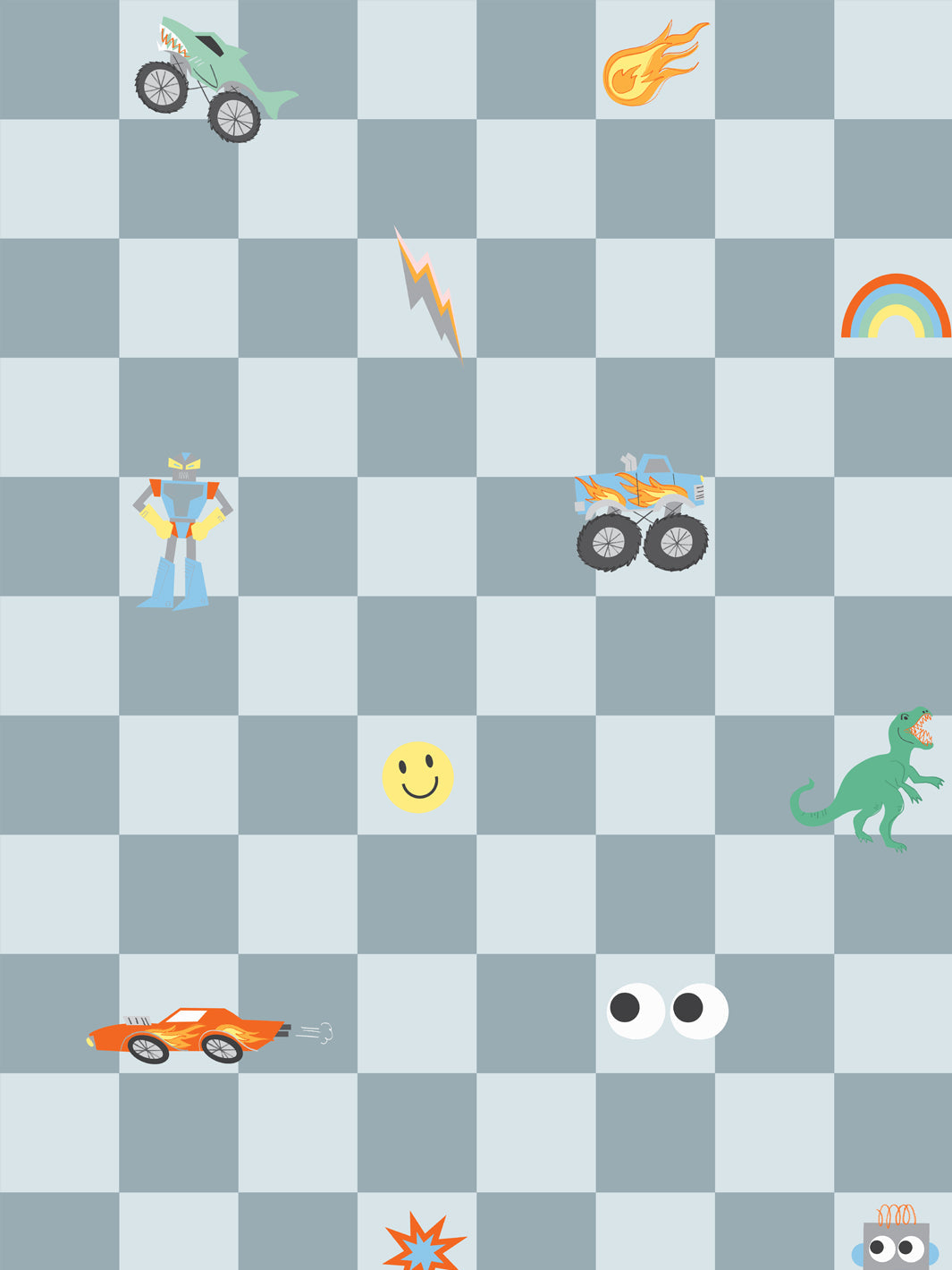 'Toybox Check' Wallpaper by Meri Meri - Light Blue