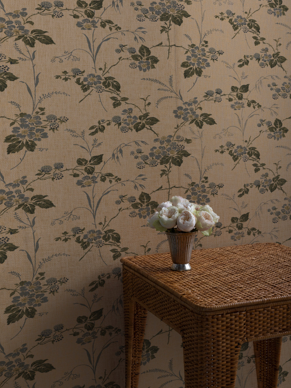 'Anna Floral' Grasscloth Wallpaper by Nathan Turner - Blues