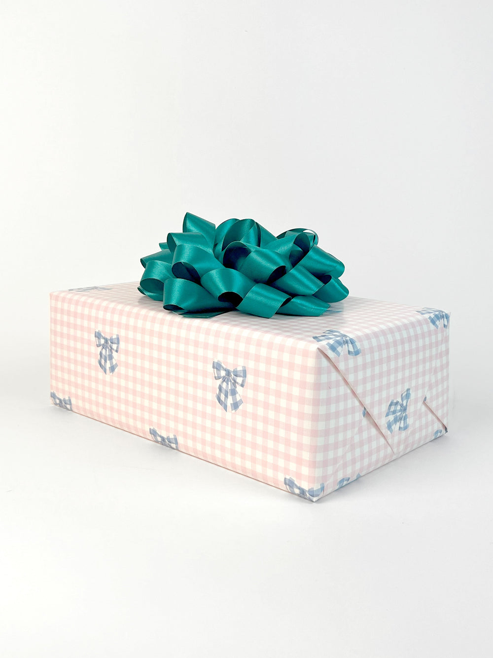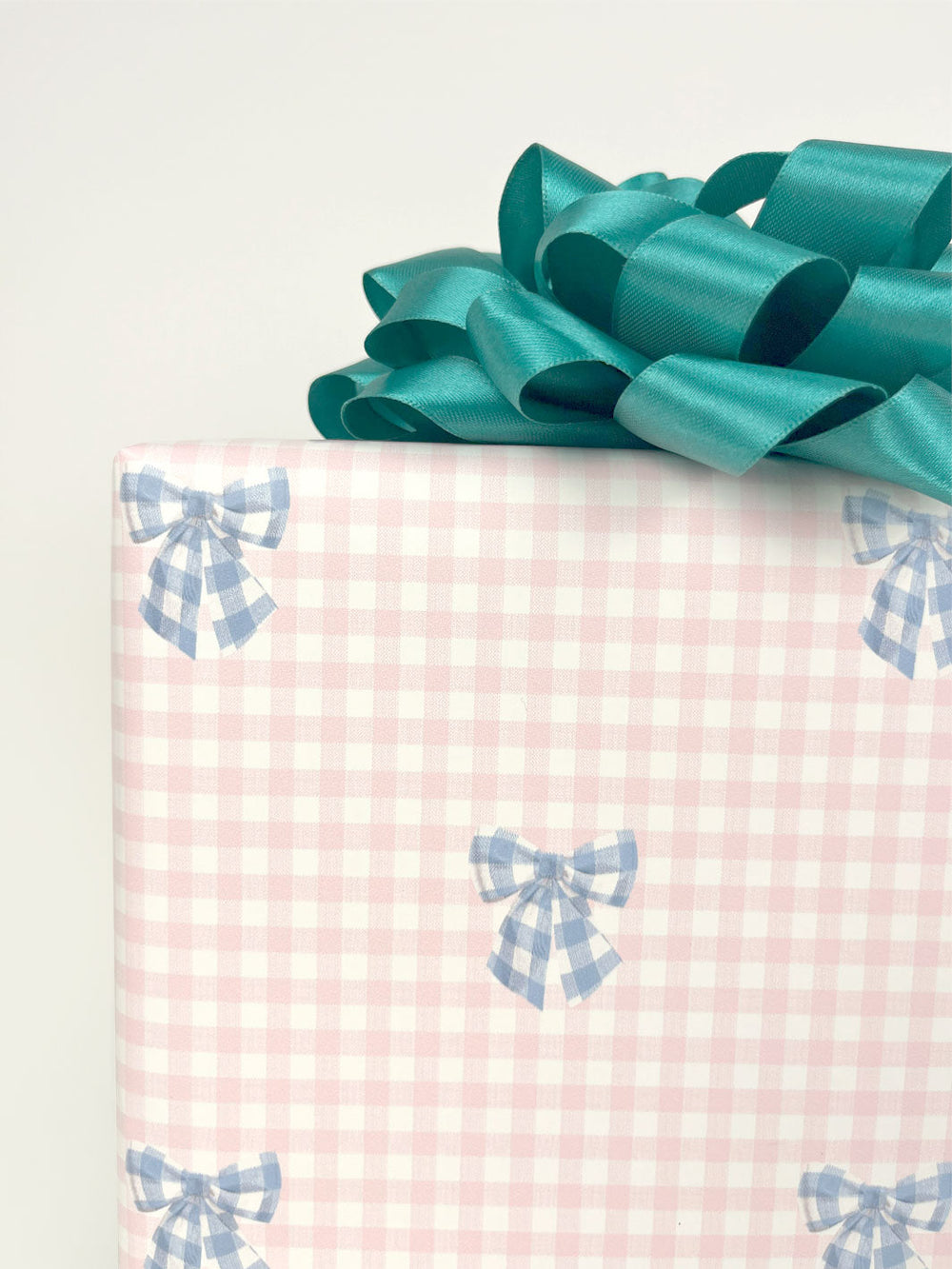 Barbie™ Gingham Bow Gift Wrap - Cornflower on Ballet Slipper