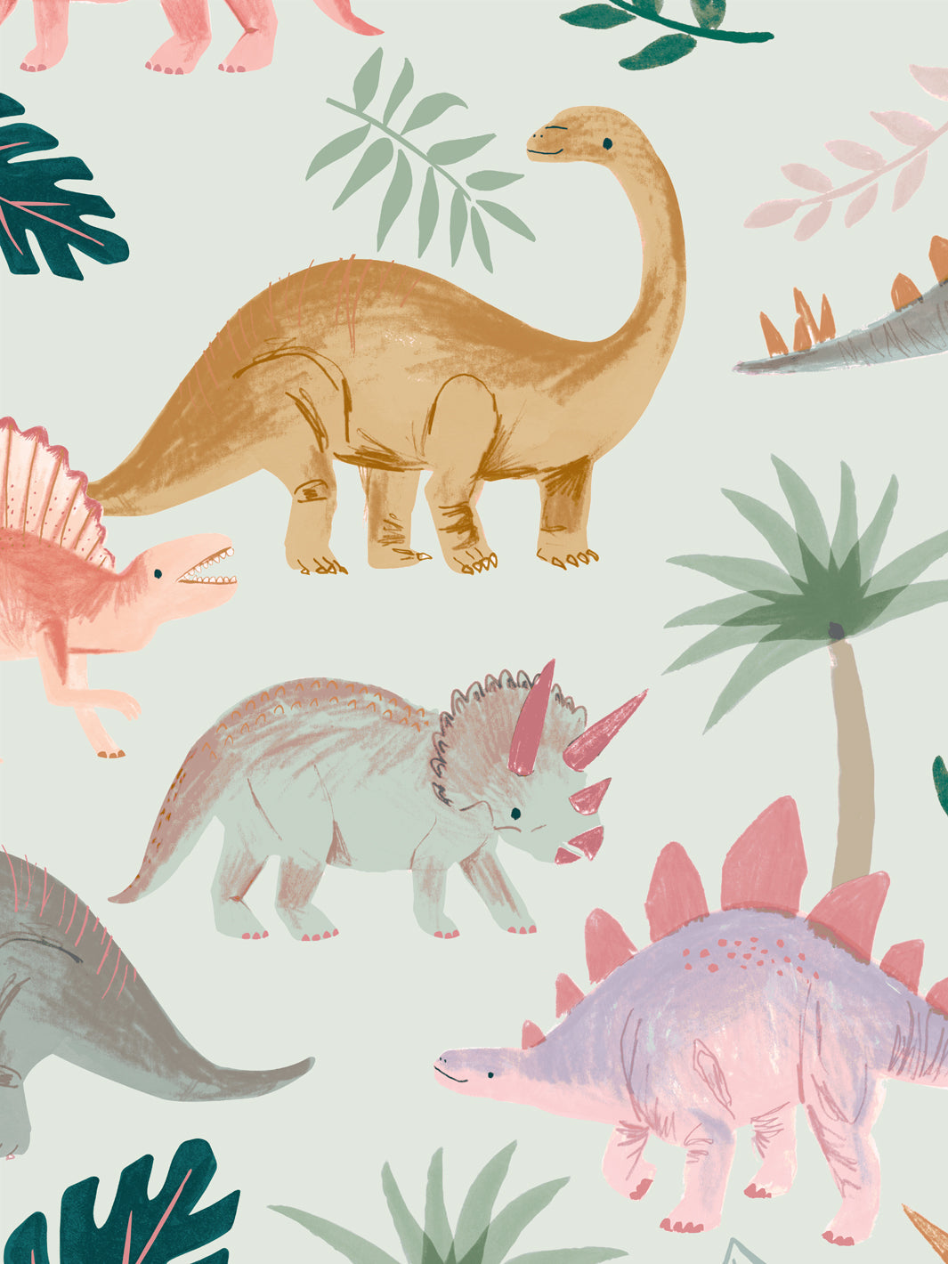 'Pastel Dino' Wallpaper by Meri Meri - Light Sage