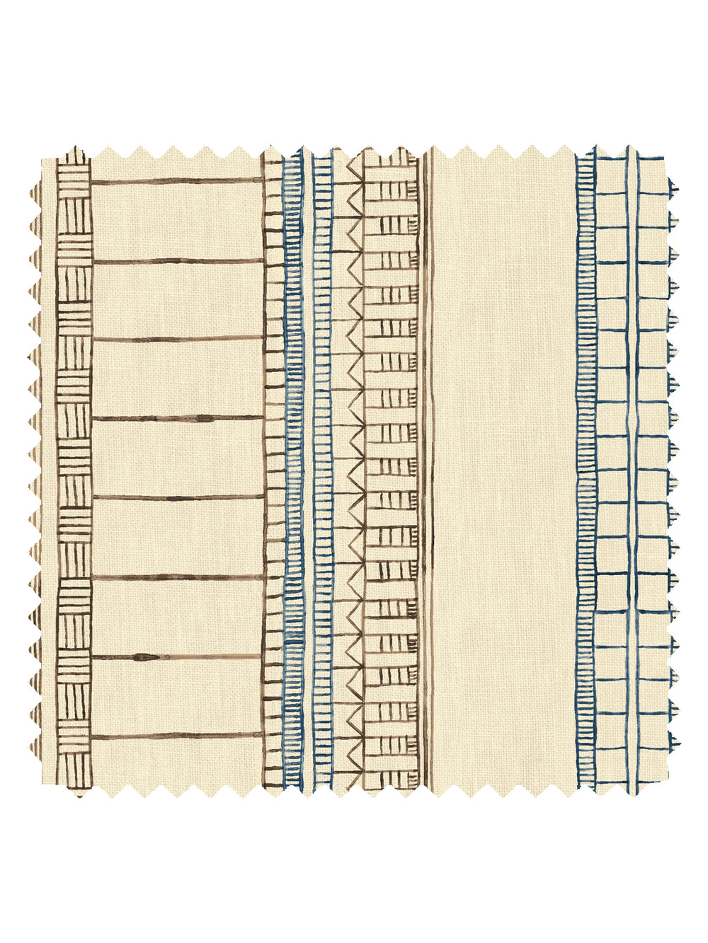 'Doodle Stripe' Tea Stained Linen Fabric by Nathan Turner - Brown Dark Blue
