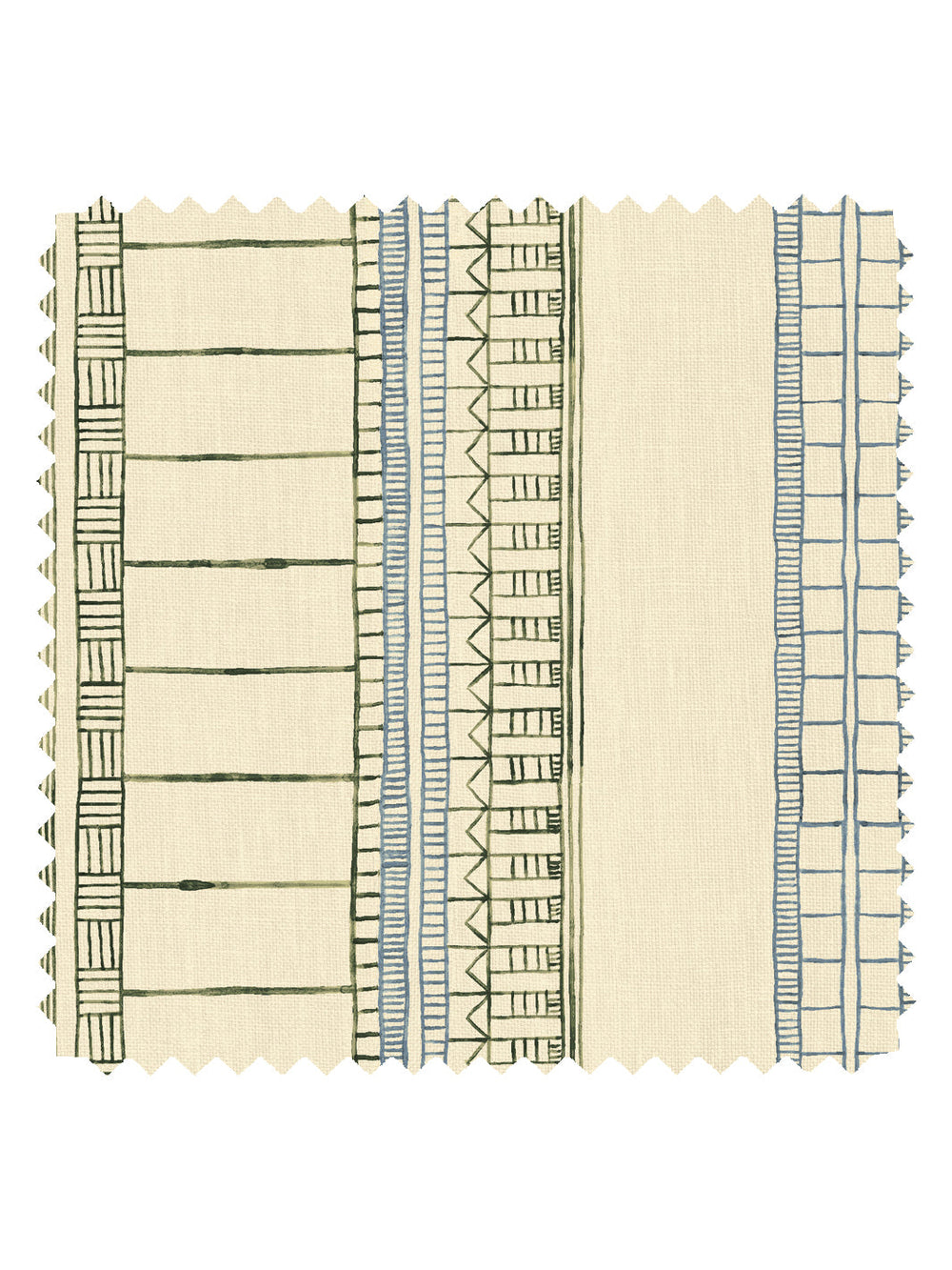 'Doodle Stripe' Tea Stained Linen Fabric by Nathan Turner - Green Blue
