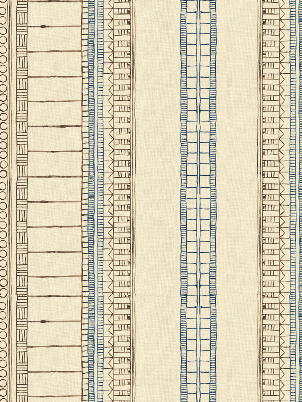 'Doodle Stripe' Tea Stained Linen Fabric by Nathan Turner - Brown Dark Blue