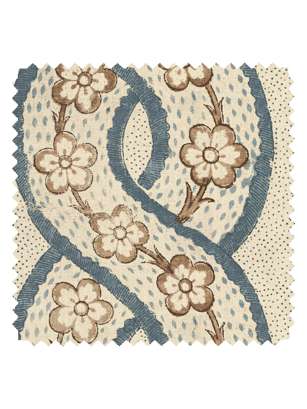 'Arthur' Linen Fabric by Nathan Turner - Blue on Taupe