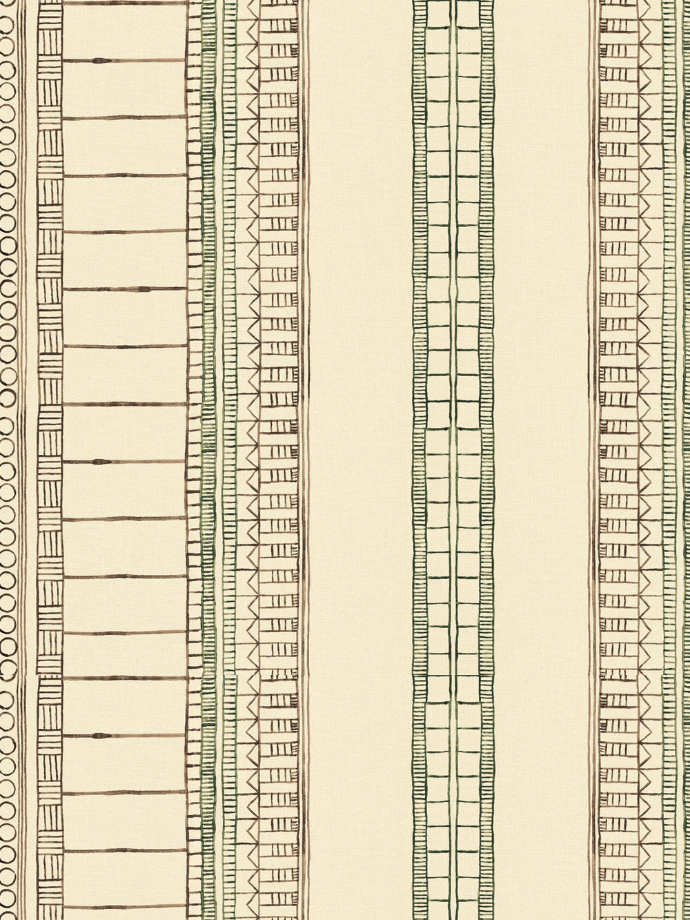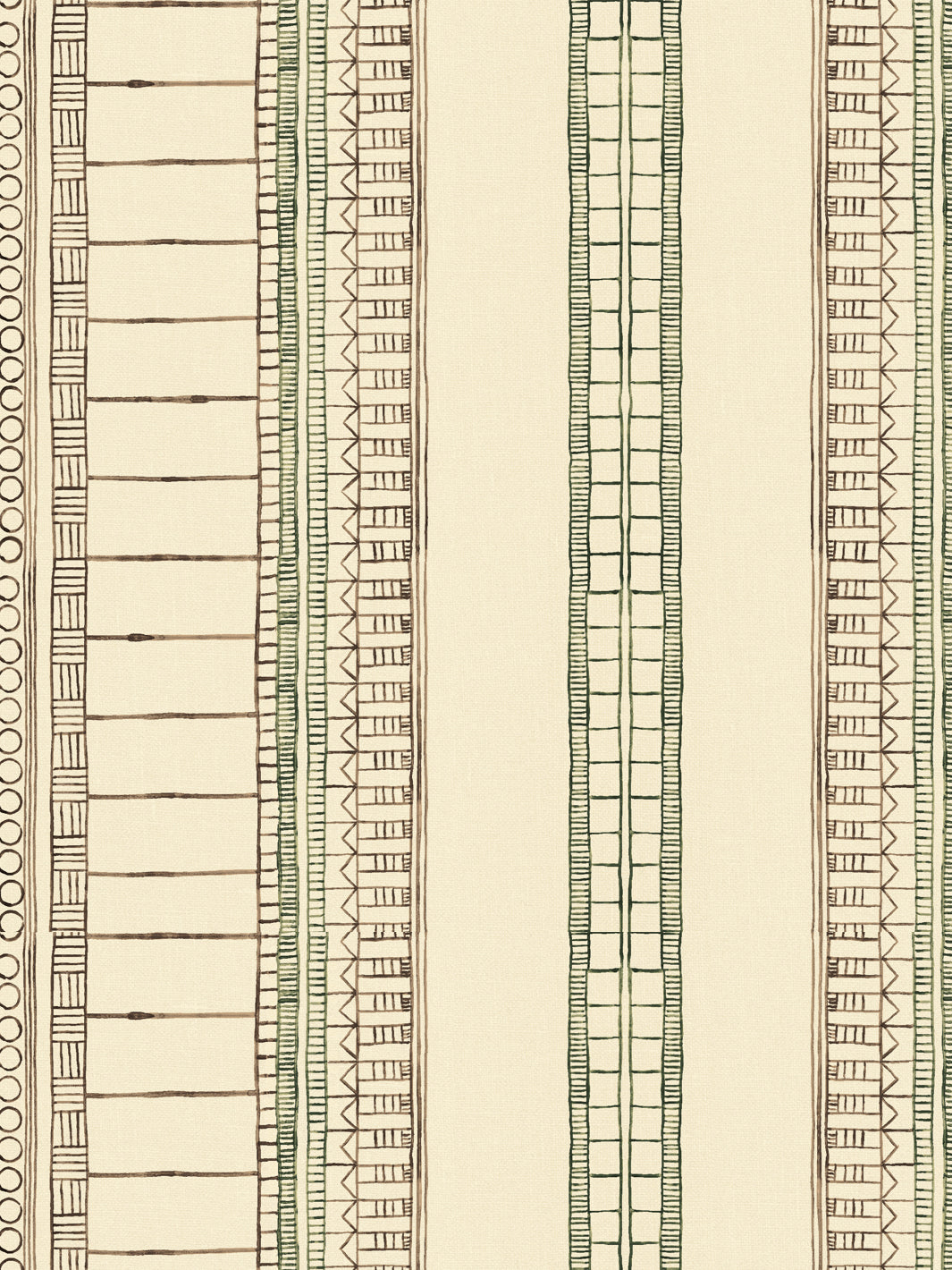 'Doodle Stripe' Tea Stained Linen Fabric by Nathan Turner - Brown Green