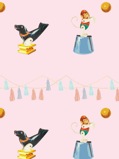 'Seal & Monkey Circus' Wallpaper by Fisher-Price™ - Pink